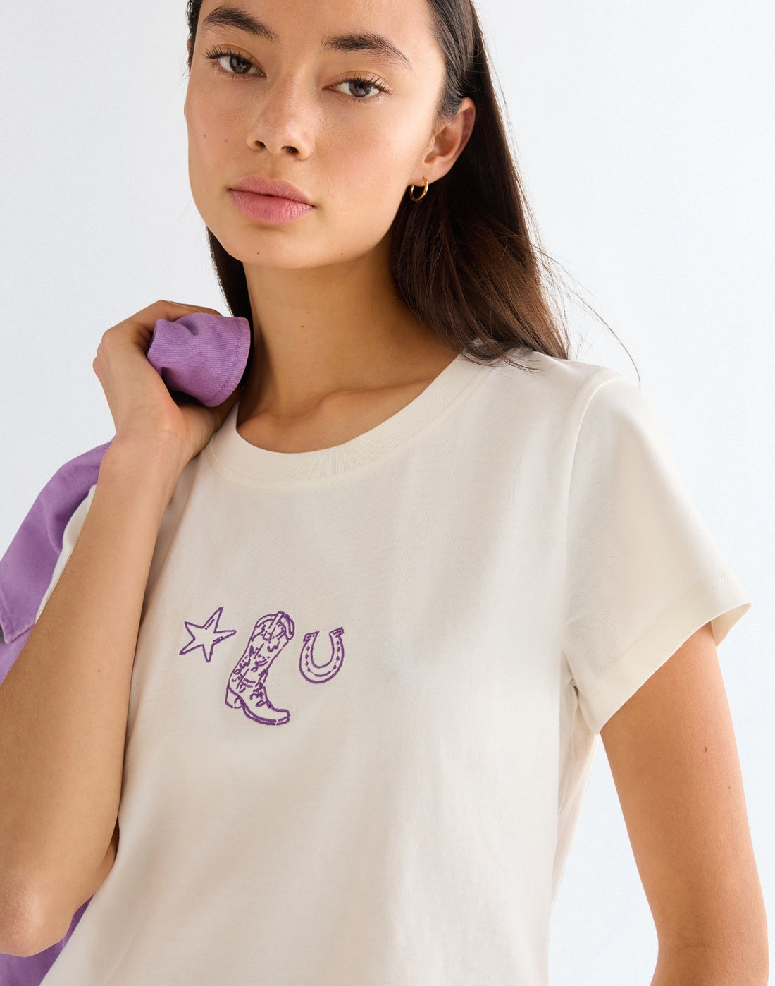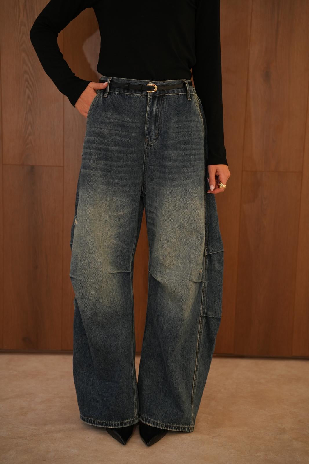 ג׳ינס בגזרה ישרה גוון כהה משופשף עם תיפורים