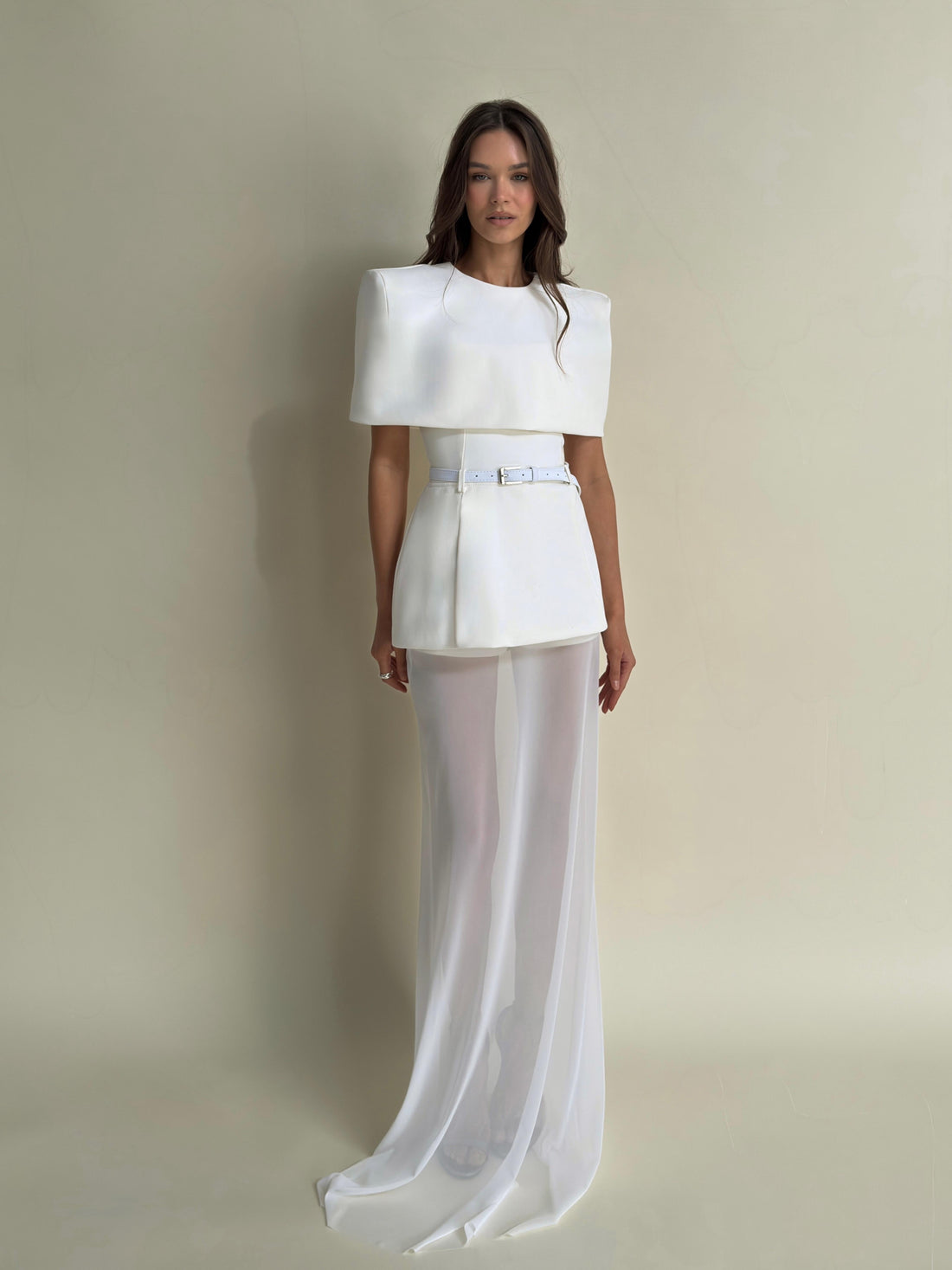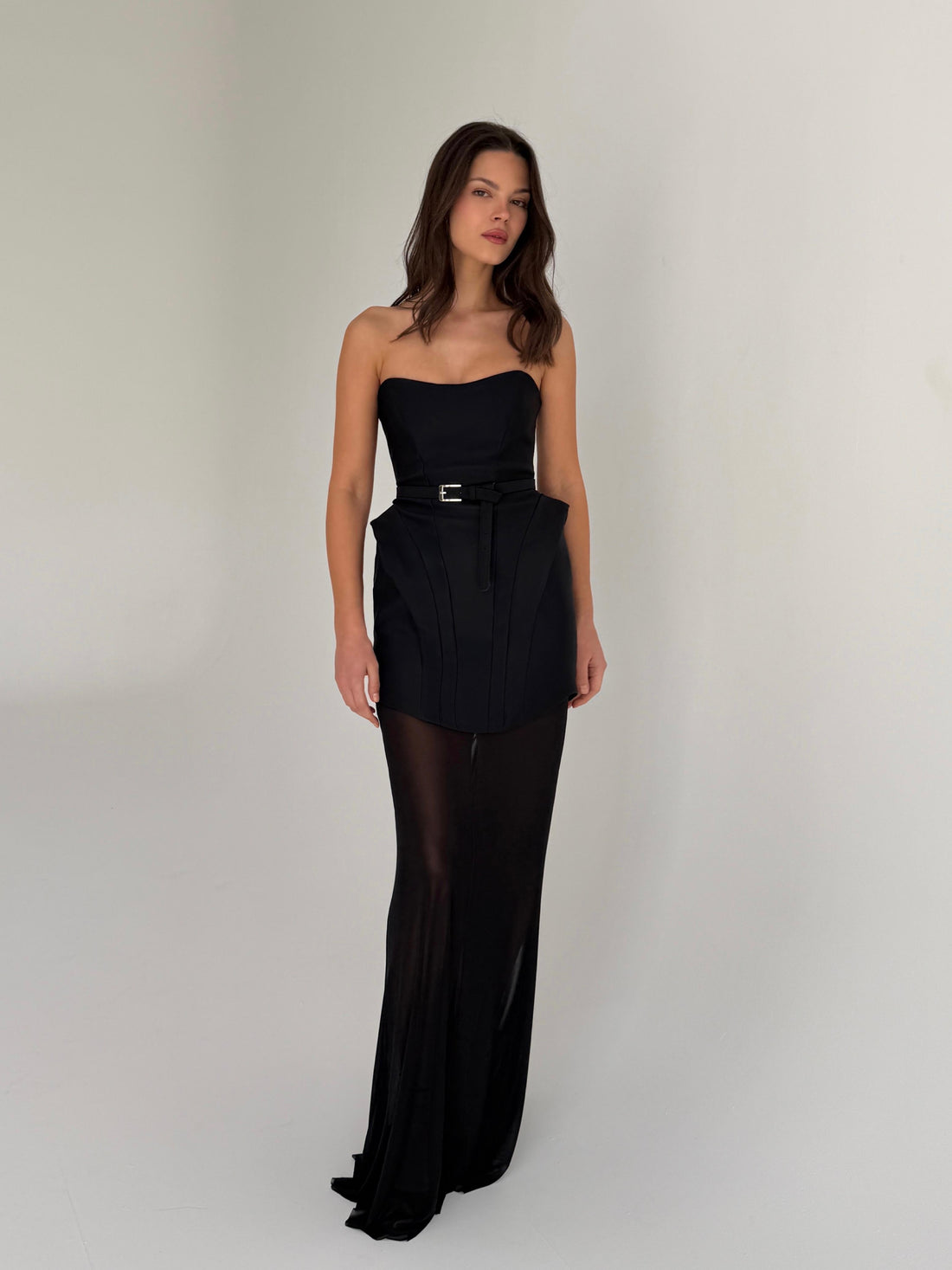 שמלת מקסי משולבת גזרת מיני מחוך עם עצמות פנימיות ומתחת חצאית מקסי טול מחוברת...