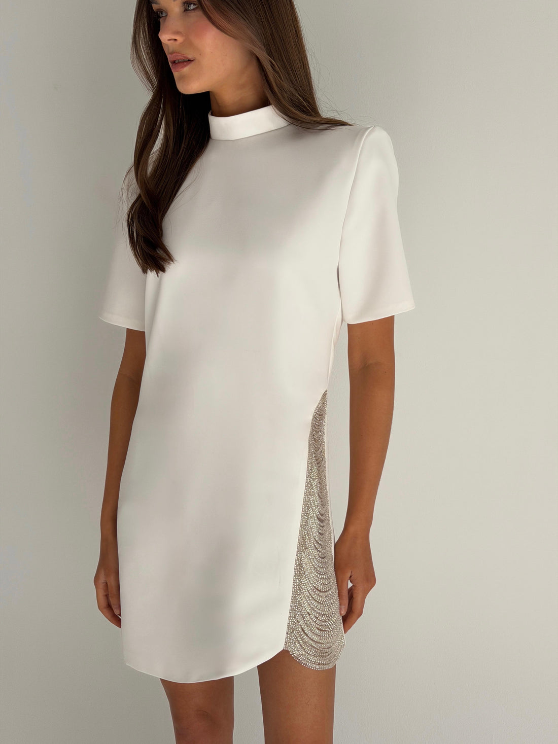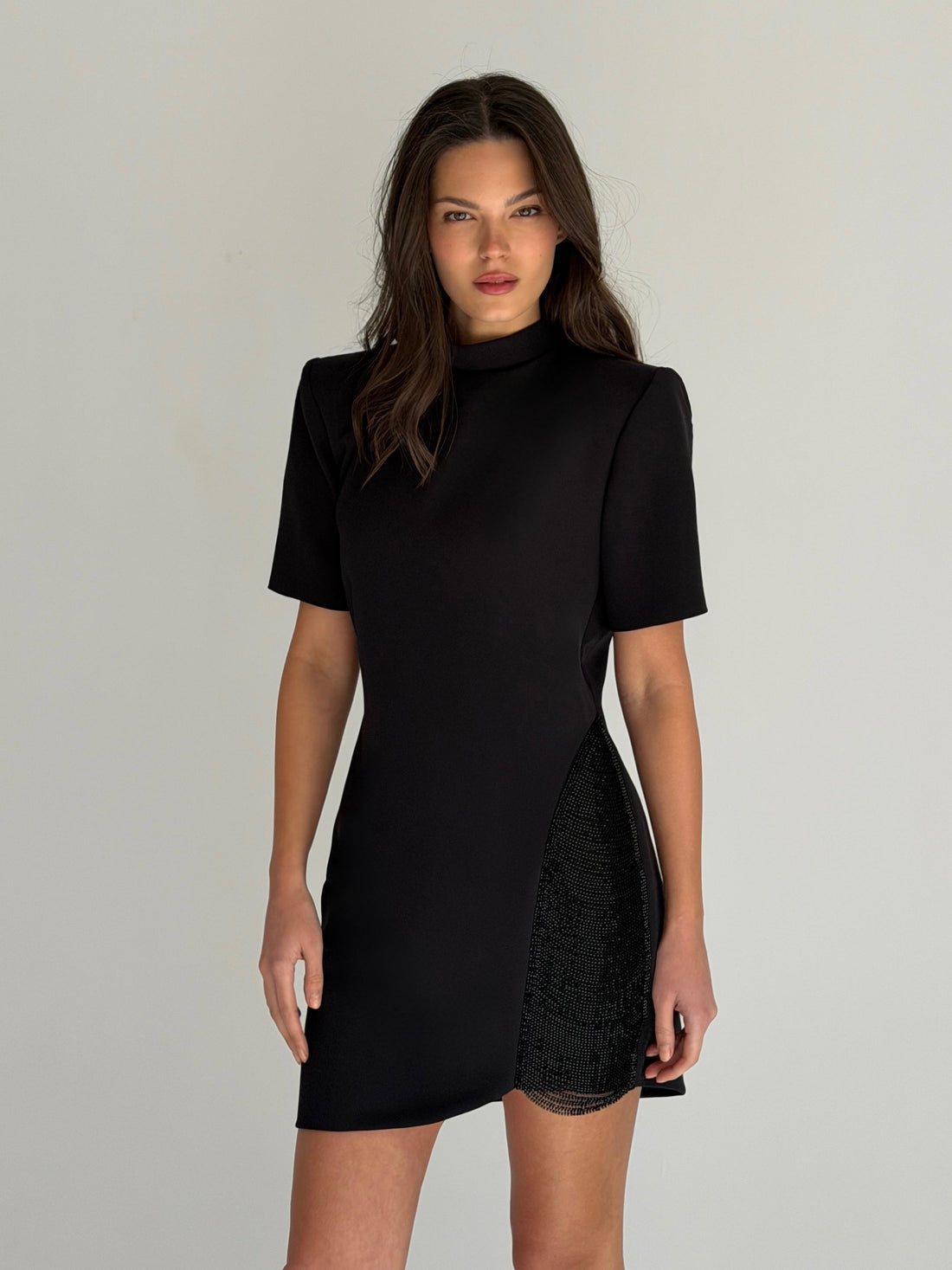 שמלת מיני מבד מחטב מחוברת לחצאית מקסי שיפון גזרת מחוך עם עצמות פנימיות קפלים במותן...