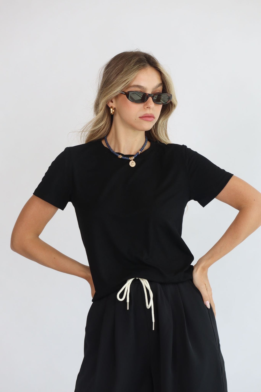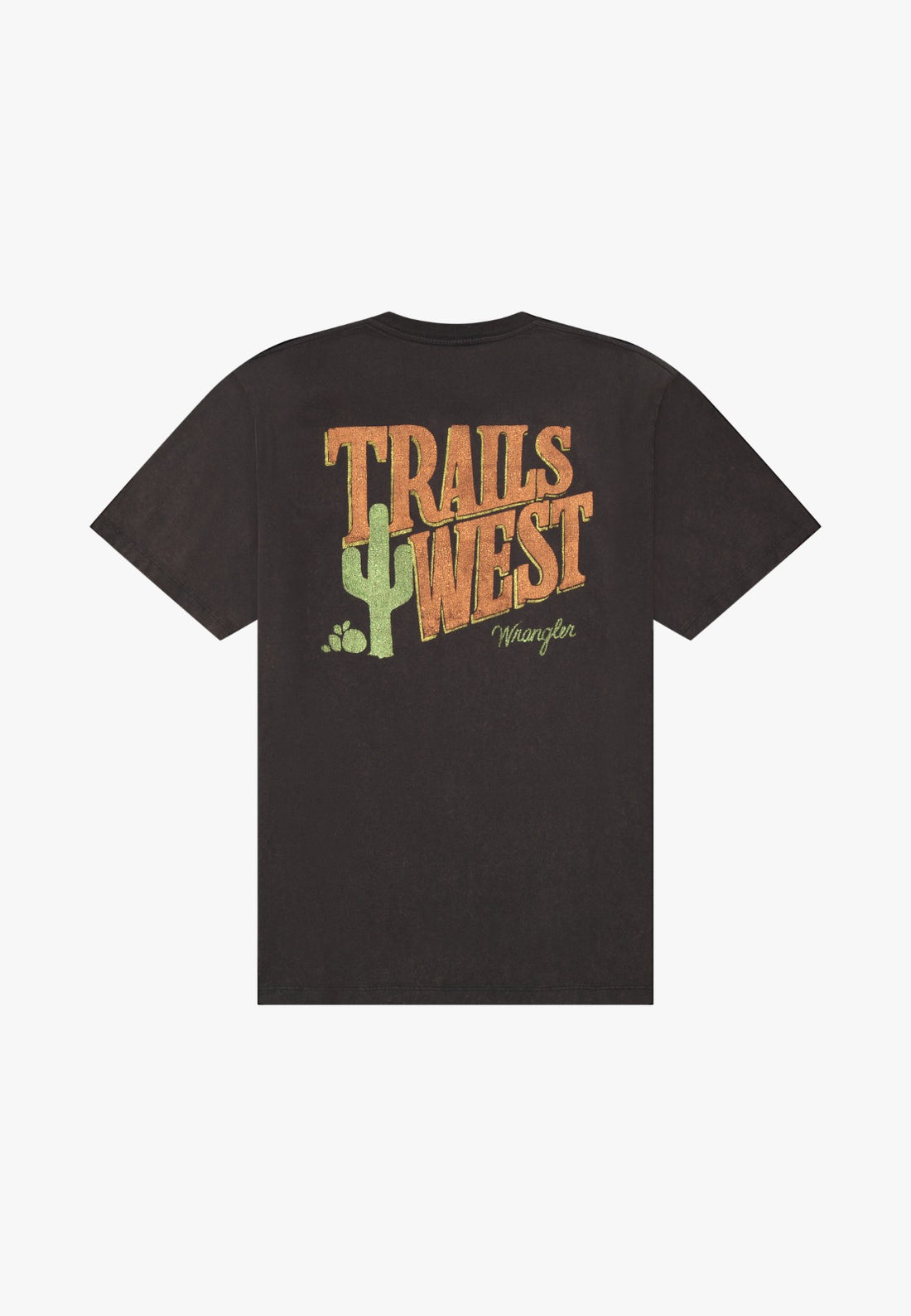 טישירט גזרת בייסיק רחבה בד 100% כותנה הדפס בגב ולוגו קטן מקדימה צבע שחור ווש...