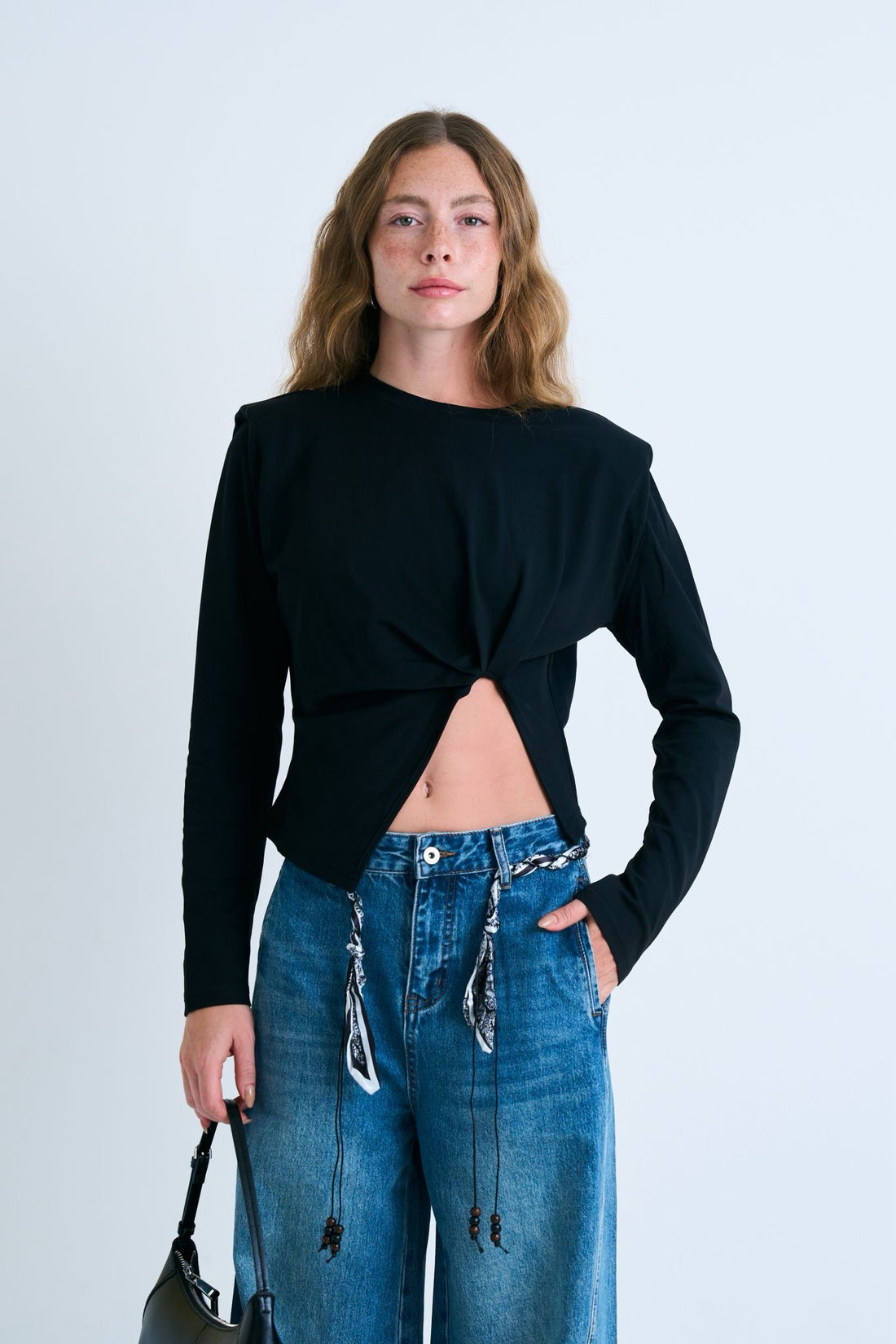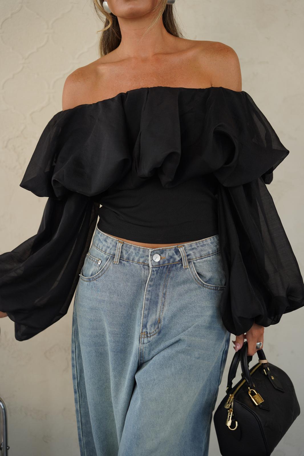 טופ עשיר עם גומי , שרוולים ארוכים תפוחיםהטופ קיים בשחור ולבן