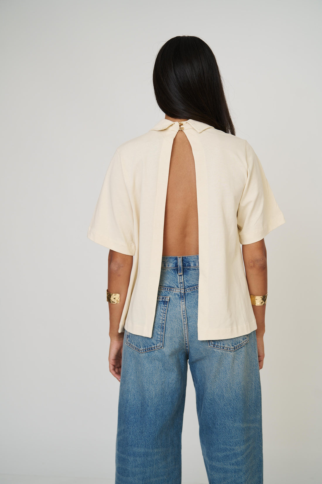 חולצת טישרט בשילוב צווארון וגב פתוח