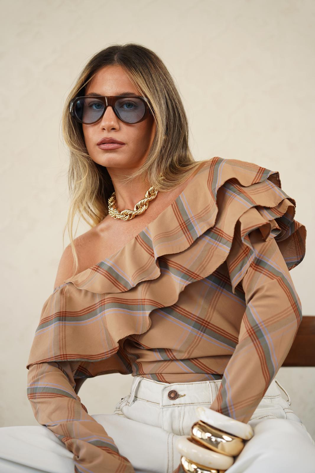 חולצת שיפון בצבע שמנת בהדפס נקודות