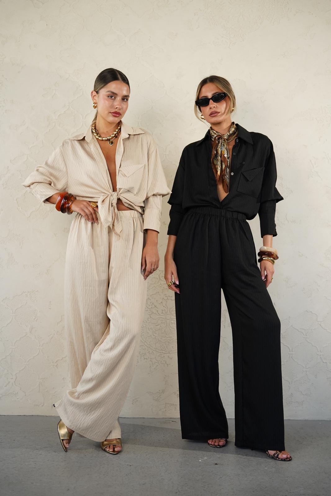חליפת פנאי מבד איכותי גזרה ישרה , נשפכת על הגוףמכנס עם גומי חולצה מכופתרת עם צווארוןהחליפה קיימת...
