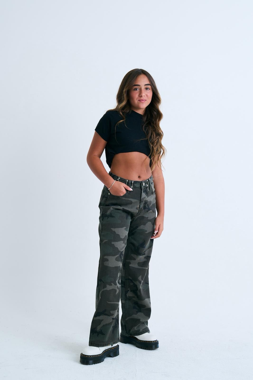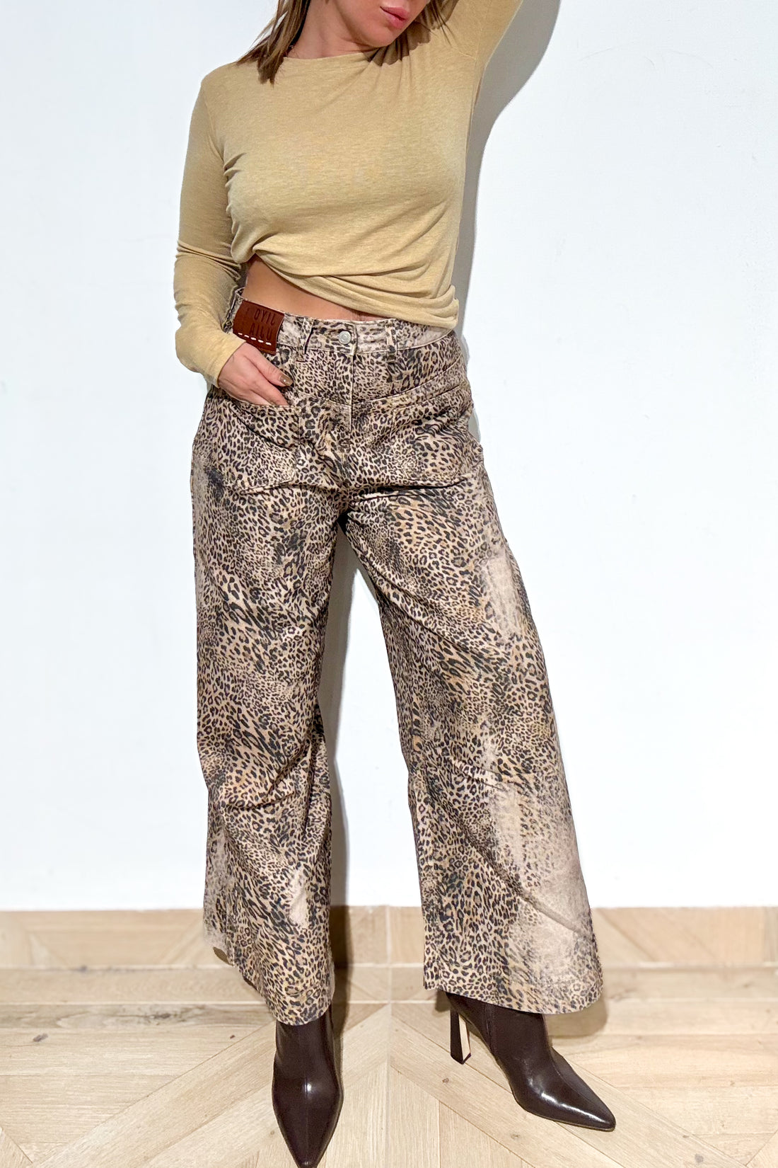מכנס מבד ג׳ינס מנומר גזרה מתרחבת אורך ברוגז (מגיע עד לקרסול) ניתן להחליט באיזה גובה...