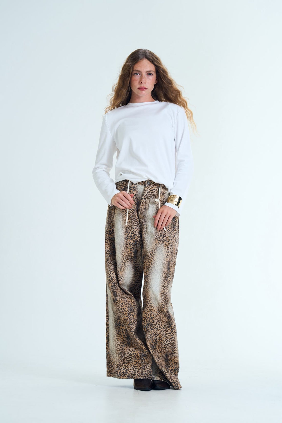 ג׳ינס מנומר לבן בגזרה אוברסייז סמול ומדיום
