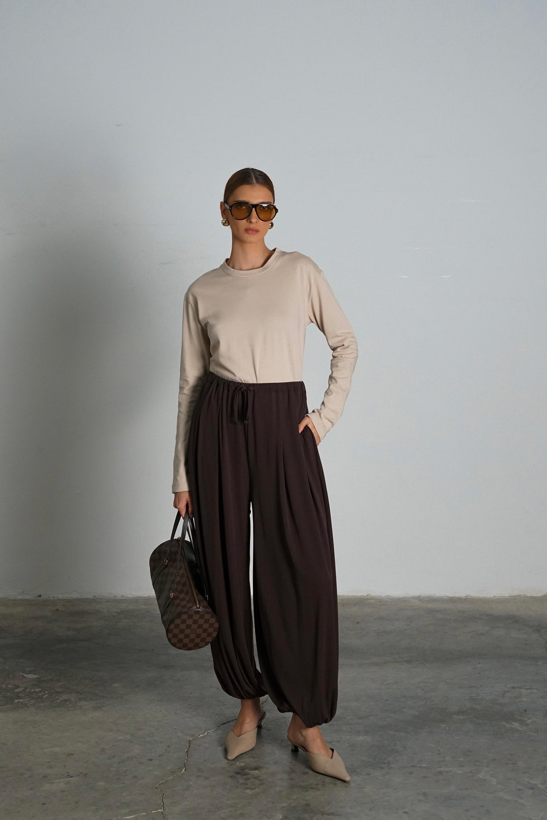 מכנס בגזרת בלון עם גומי במותן ובסיומת