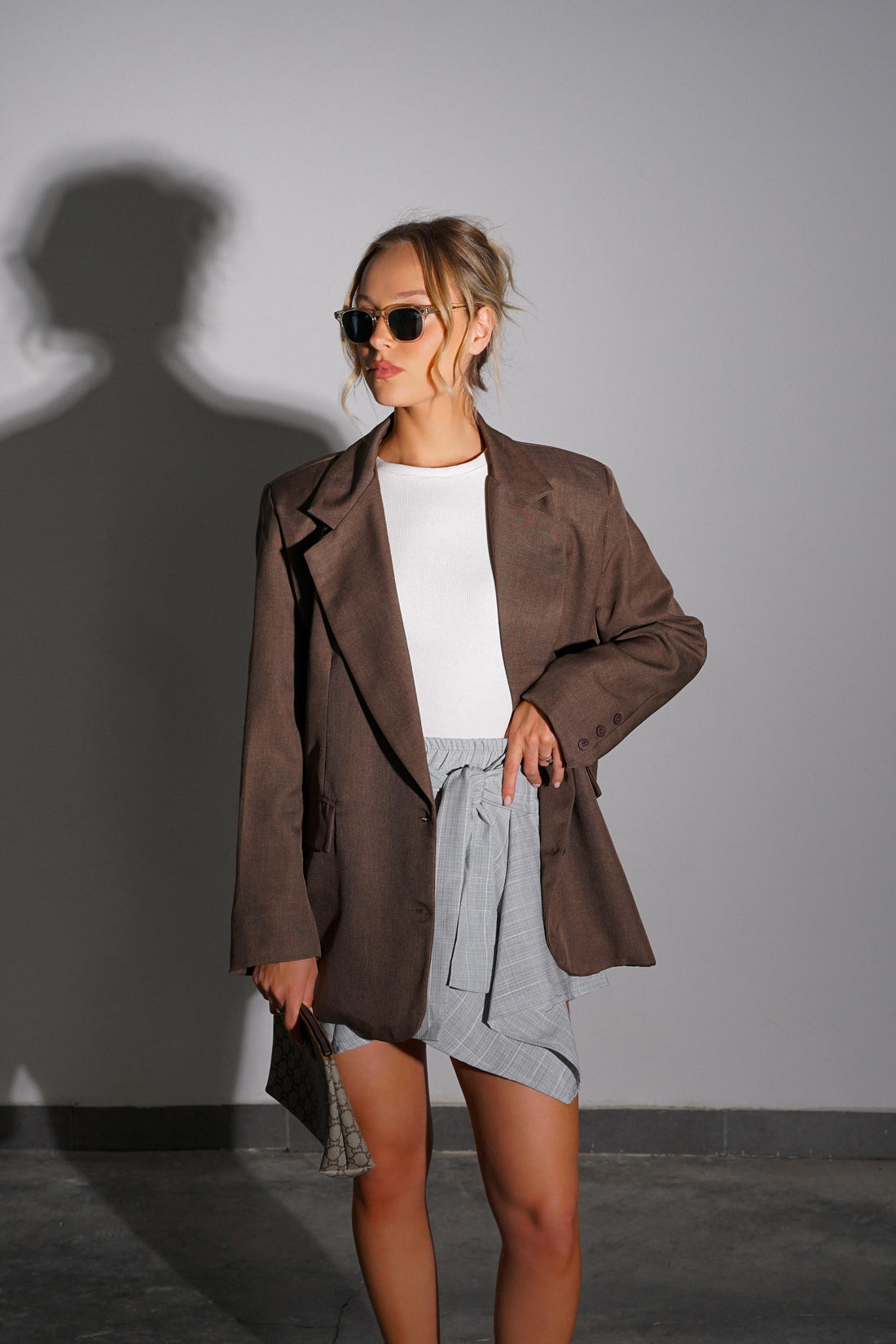 גקט בגזרת בלייזר מחויט עם כריות בכתפיים וסגירת כפתוריםONE SIZE