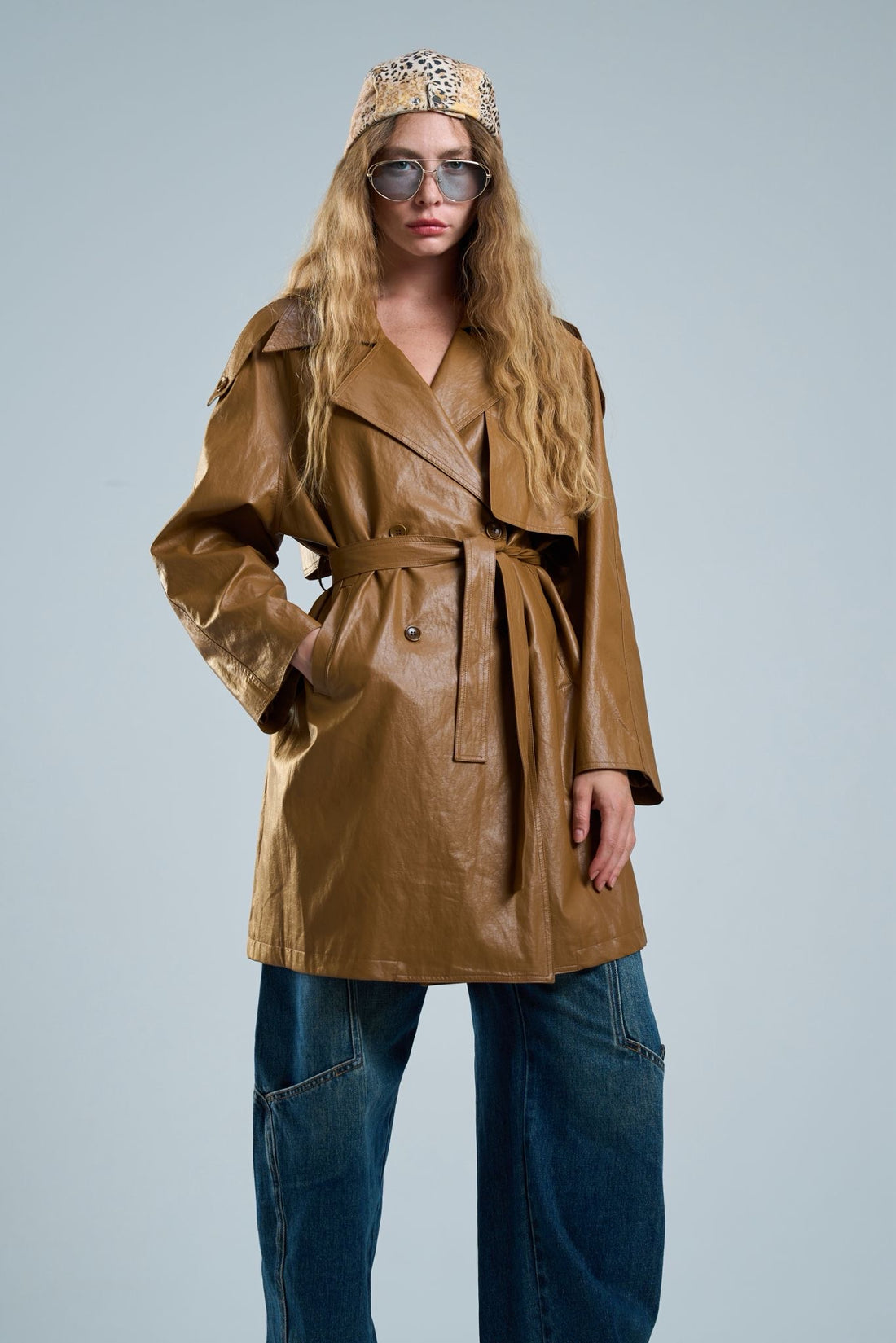 ג׳קט טרנץ דמוי עור בגימור מבריק