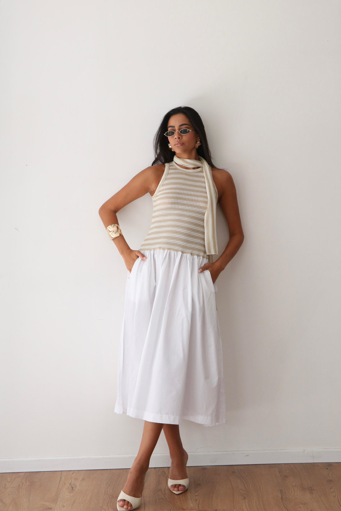 שמלת מידי גופייה בגזרת בלון בשילוב קשירה