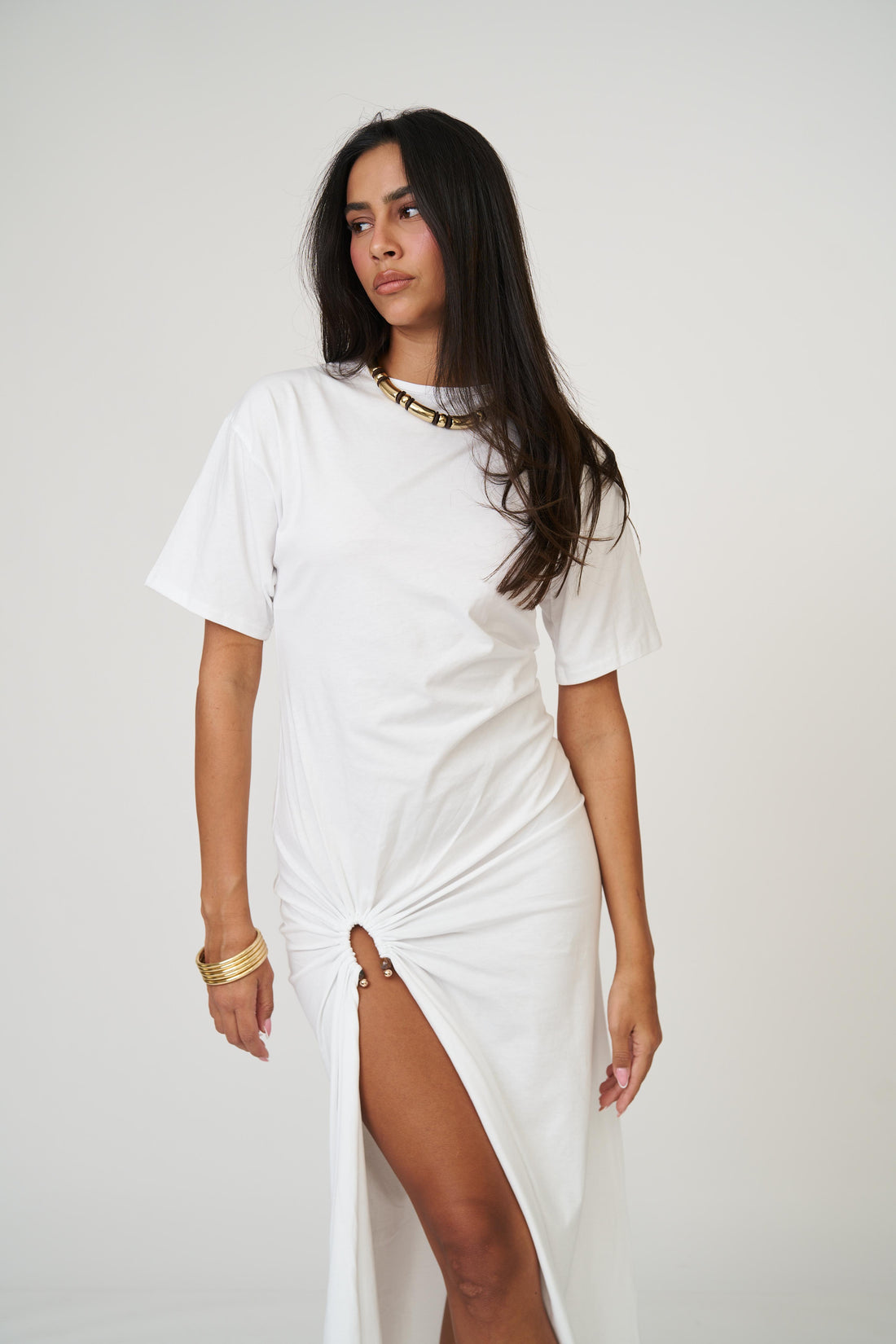 שמלת קז'ואל מקסי עם שסע בצד מבד ריבמגיעה במידות
