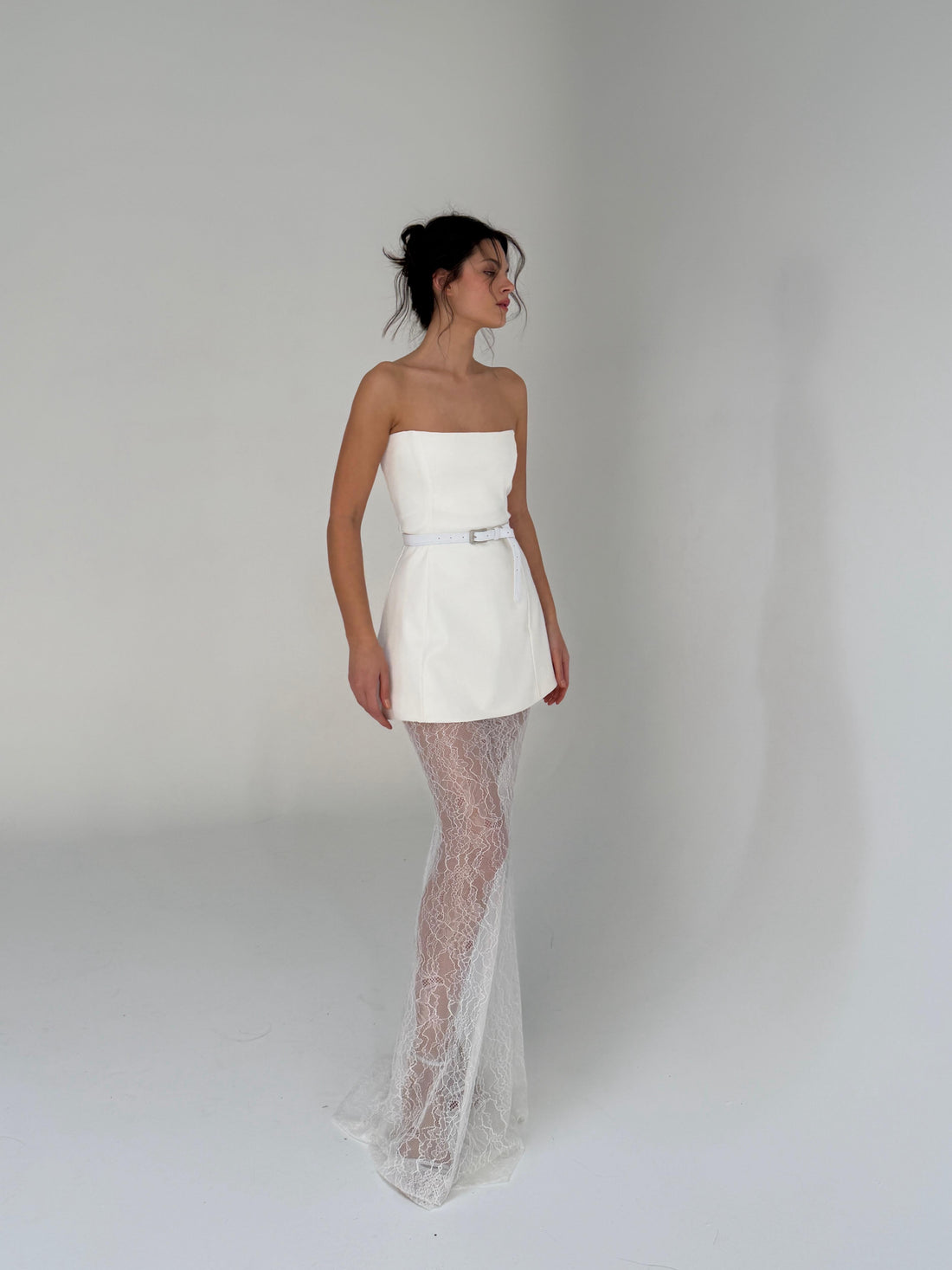 שמלת סטרפלס ארוכה בשילוב עור