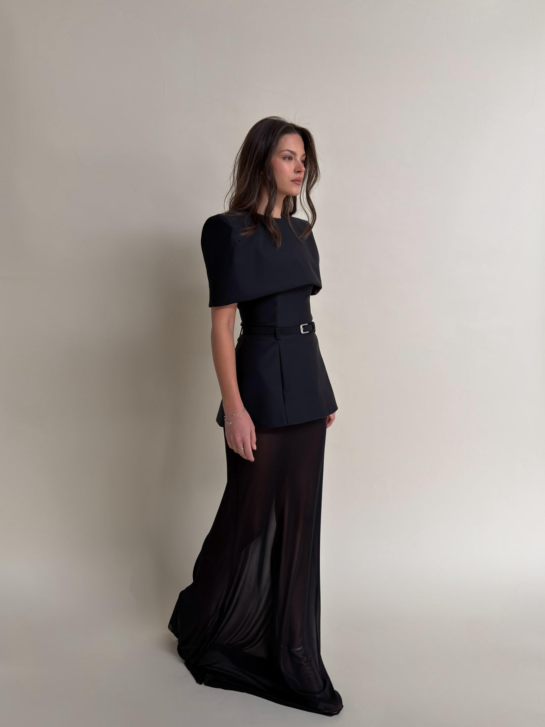 גזרת מחוך צמודה עם שילוב חרוזים בצידי השמלה