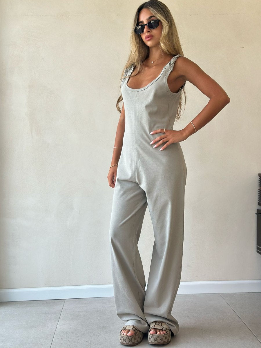 אוברול מבד כותנה עם גב פתוח וכתפיות צמה מגיע במידות