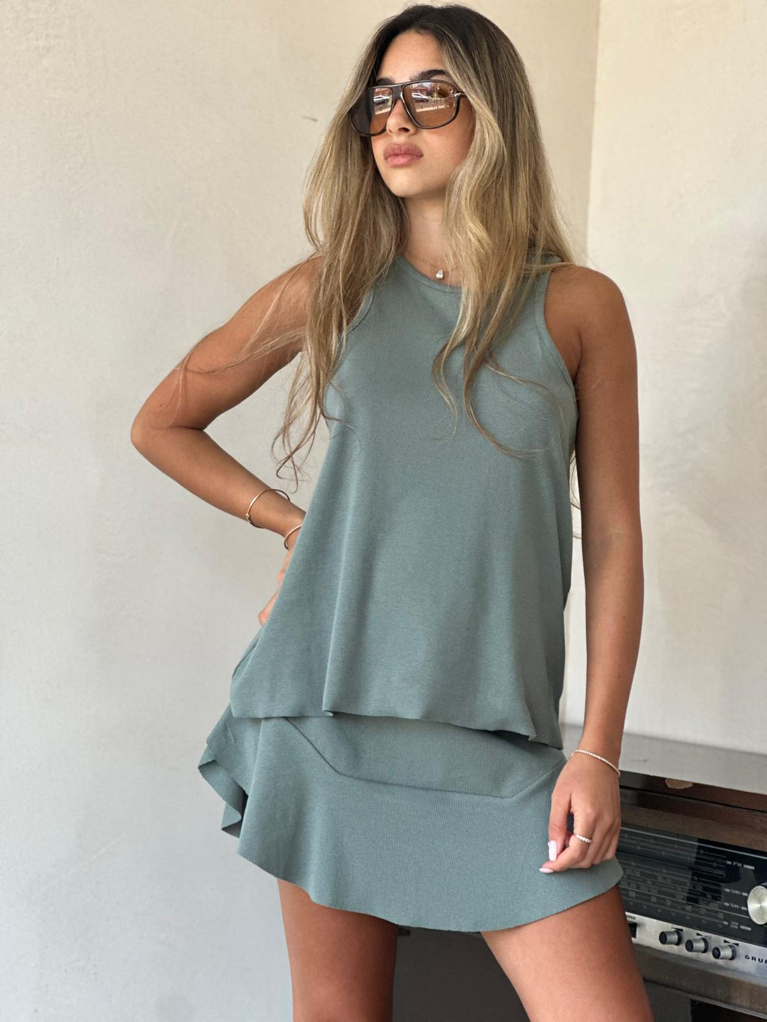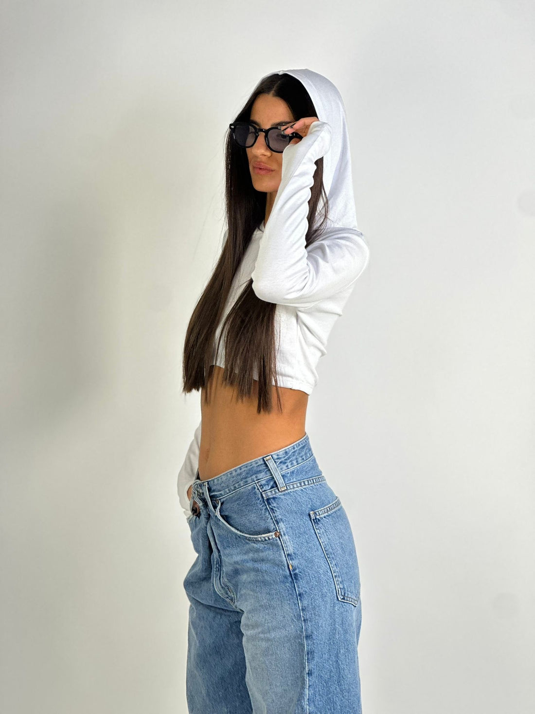טופ כתפיות בגזרת קרופ בשילוב קאפ