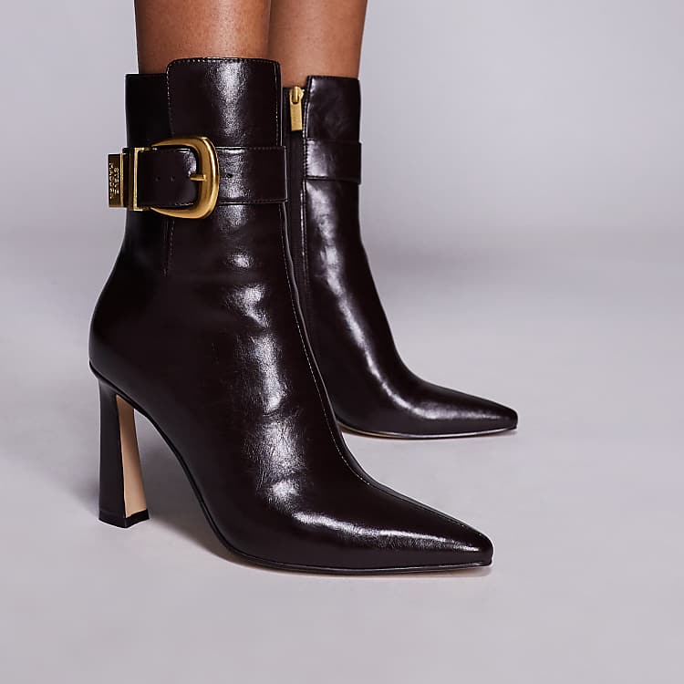 מגפון חצי של המותג סטיב מאדן אבזם מסביב לקרסול דמוי עור גובה עקב 9 ס״מ ...