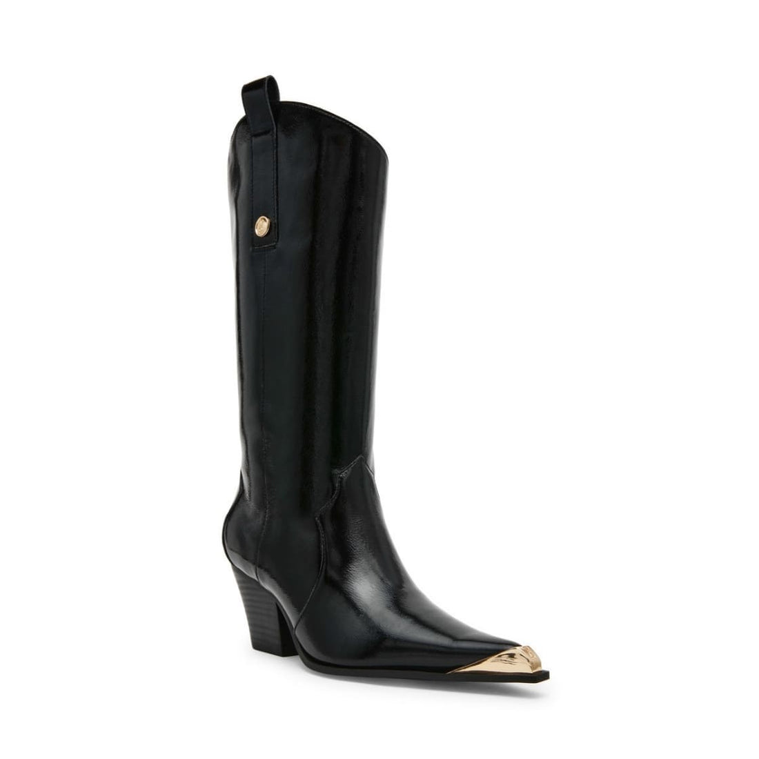 מגף עקב בשחור בגימור מעט מבריק עם חרטום מחודד מבית סטיב מאדן גובה העקב:...