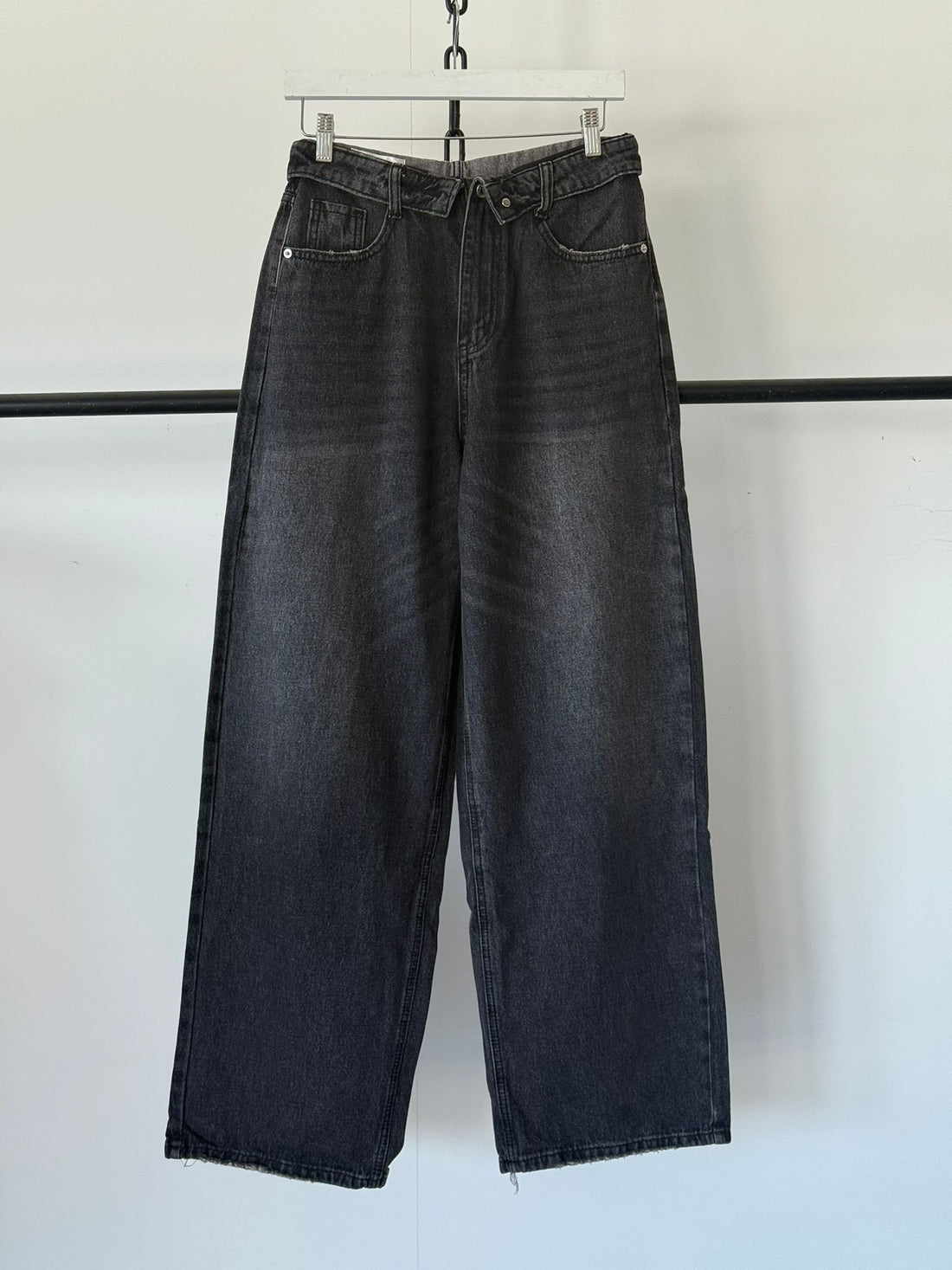 ג׳ינס בגזרה ישרה עם קיפול חגורה במותן