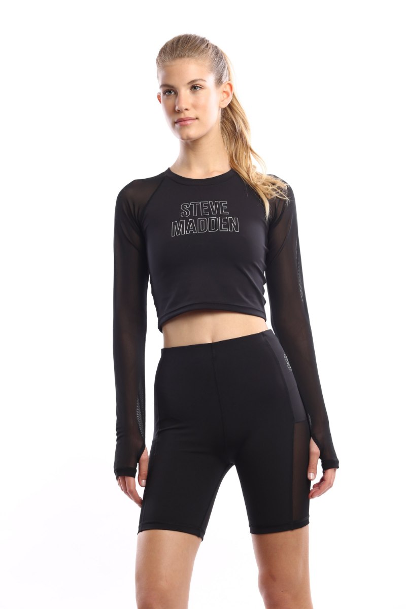 חולצה בגזרת קרופ מבד דרייפיט בשילוב בד רשת בשרוולים