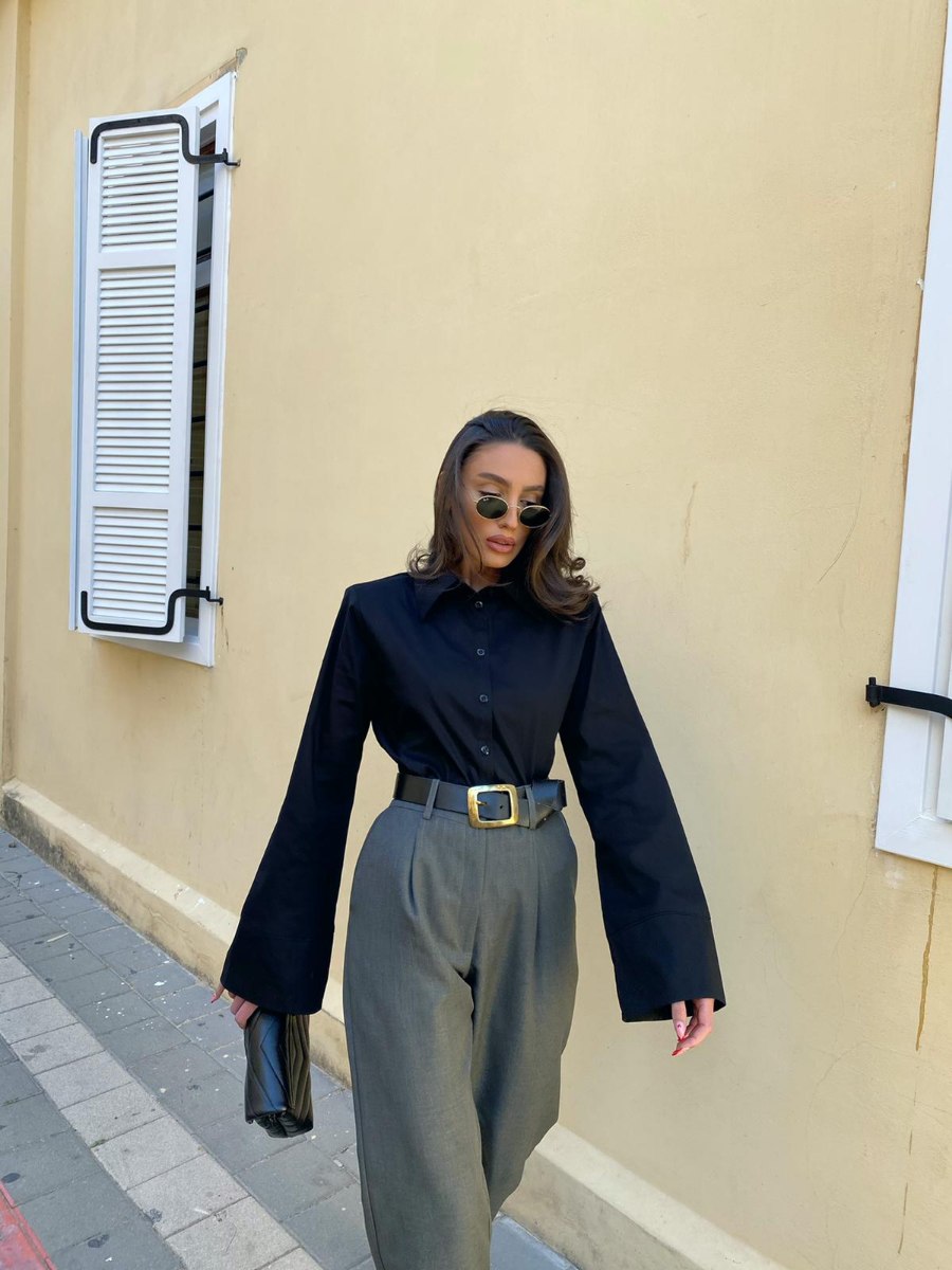כריות בכתפיים ושרוול מתרחב עם מנג'ט רחב