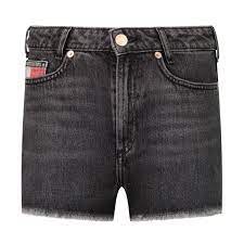 ג'ינס שורט שחור בשילוב כיס עם לוגו המותג