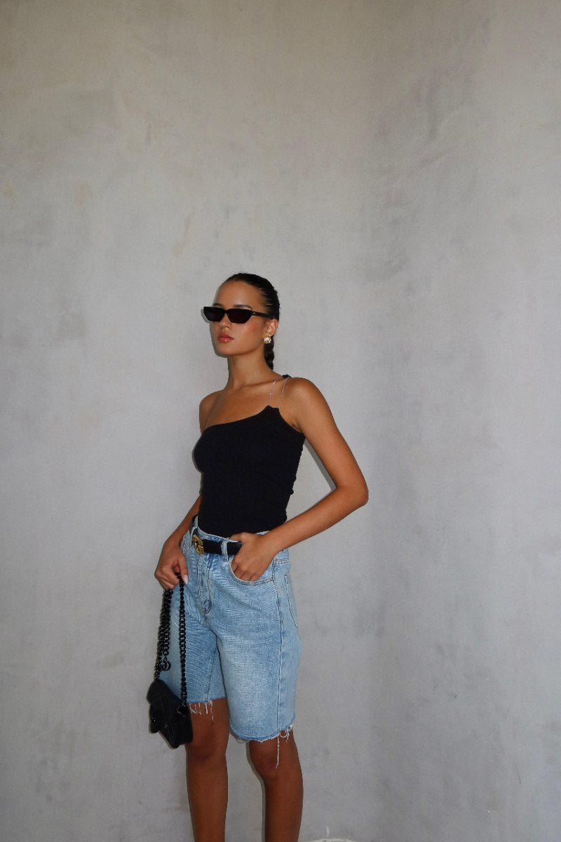 גופיית ריב בגזרת כתף אחת עם חיבור סיליקון