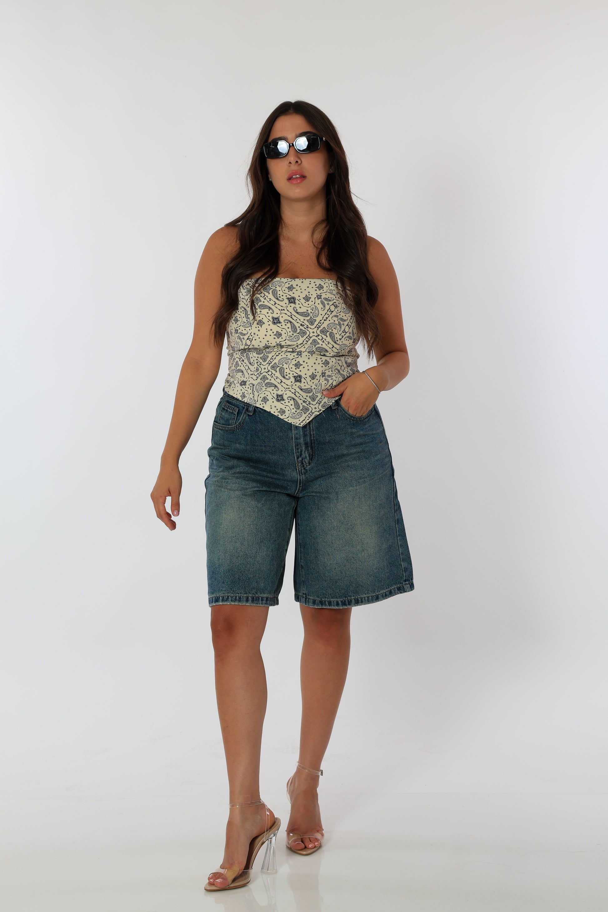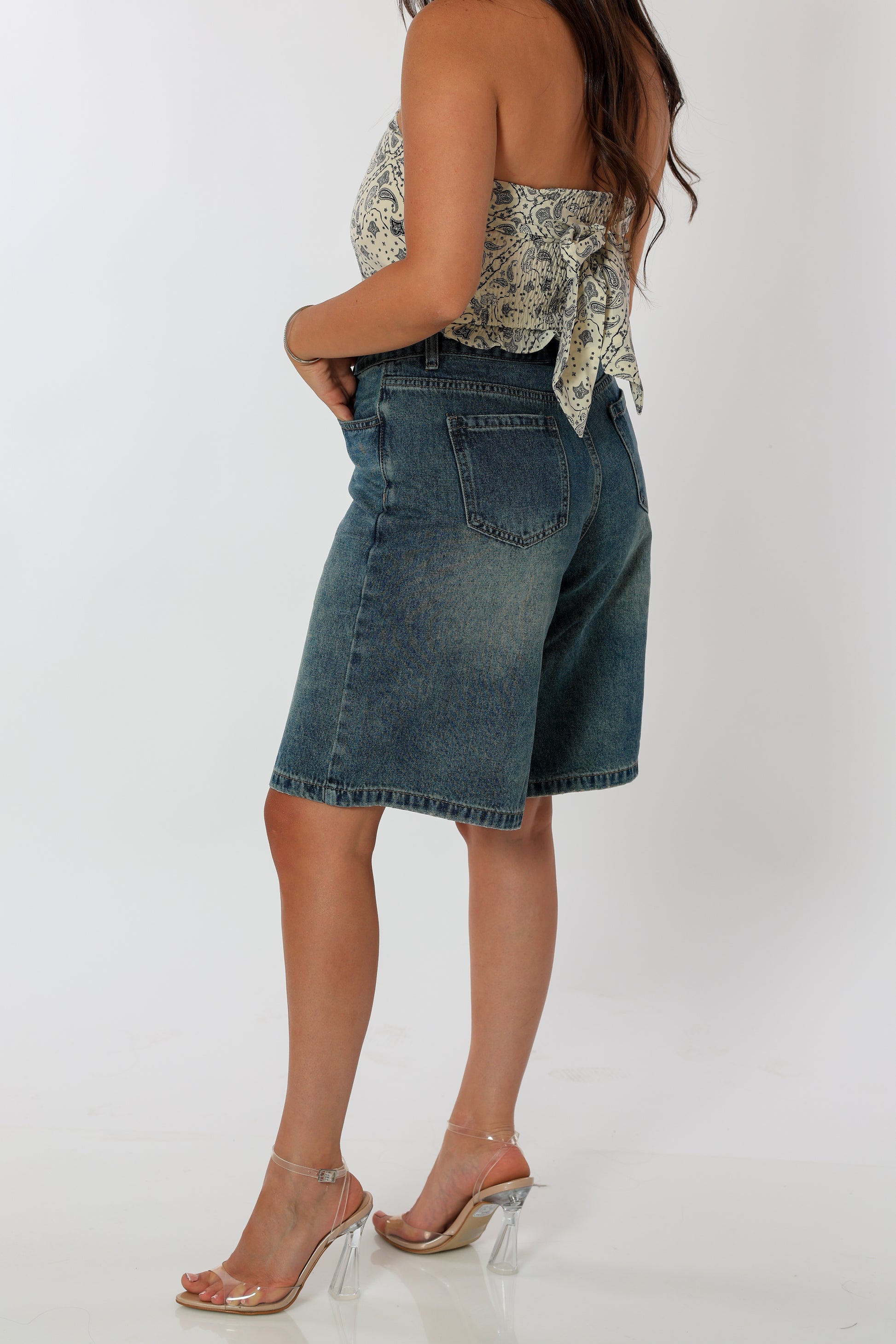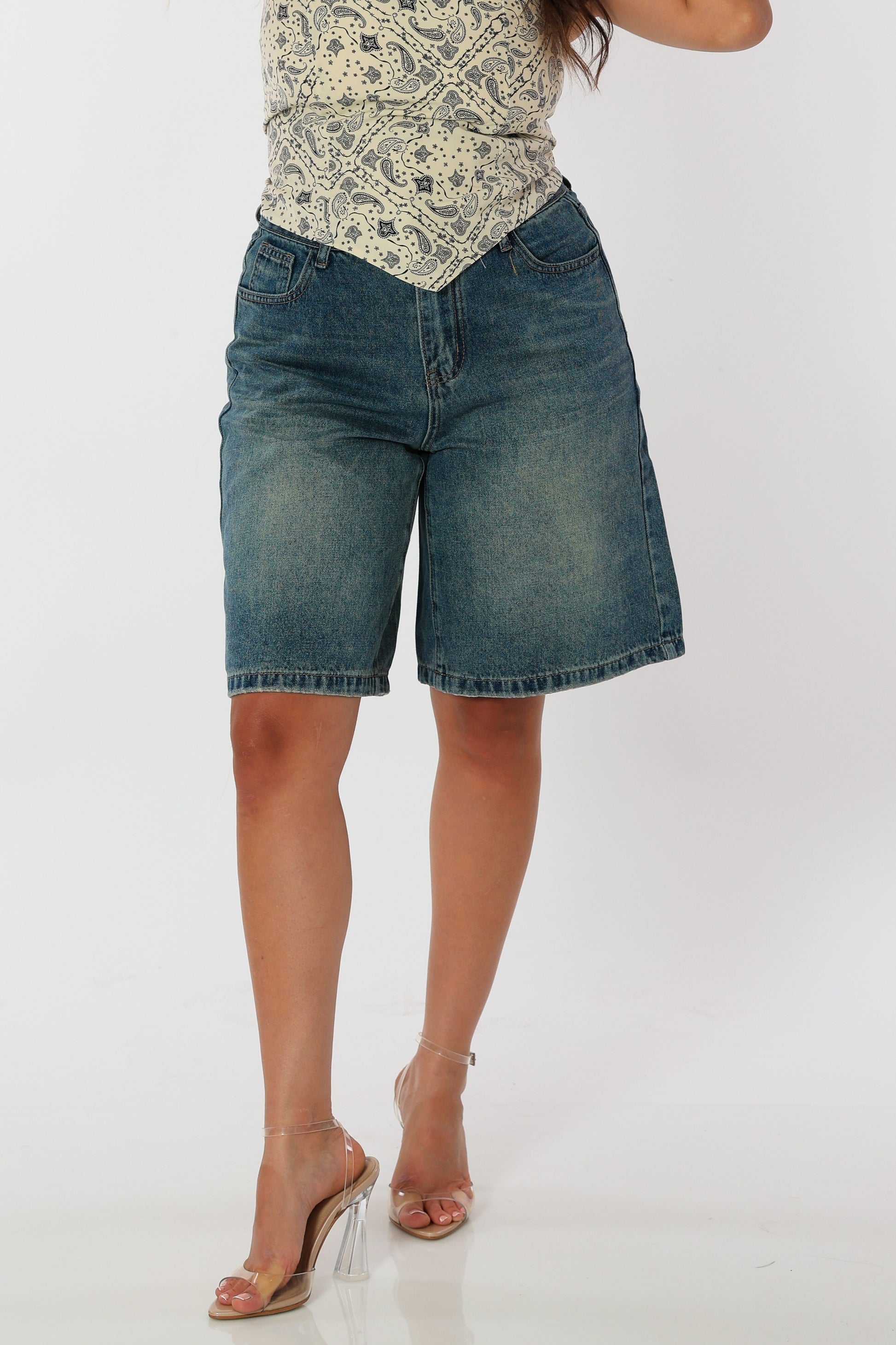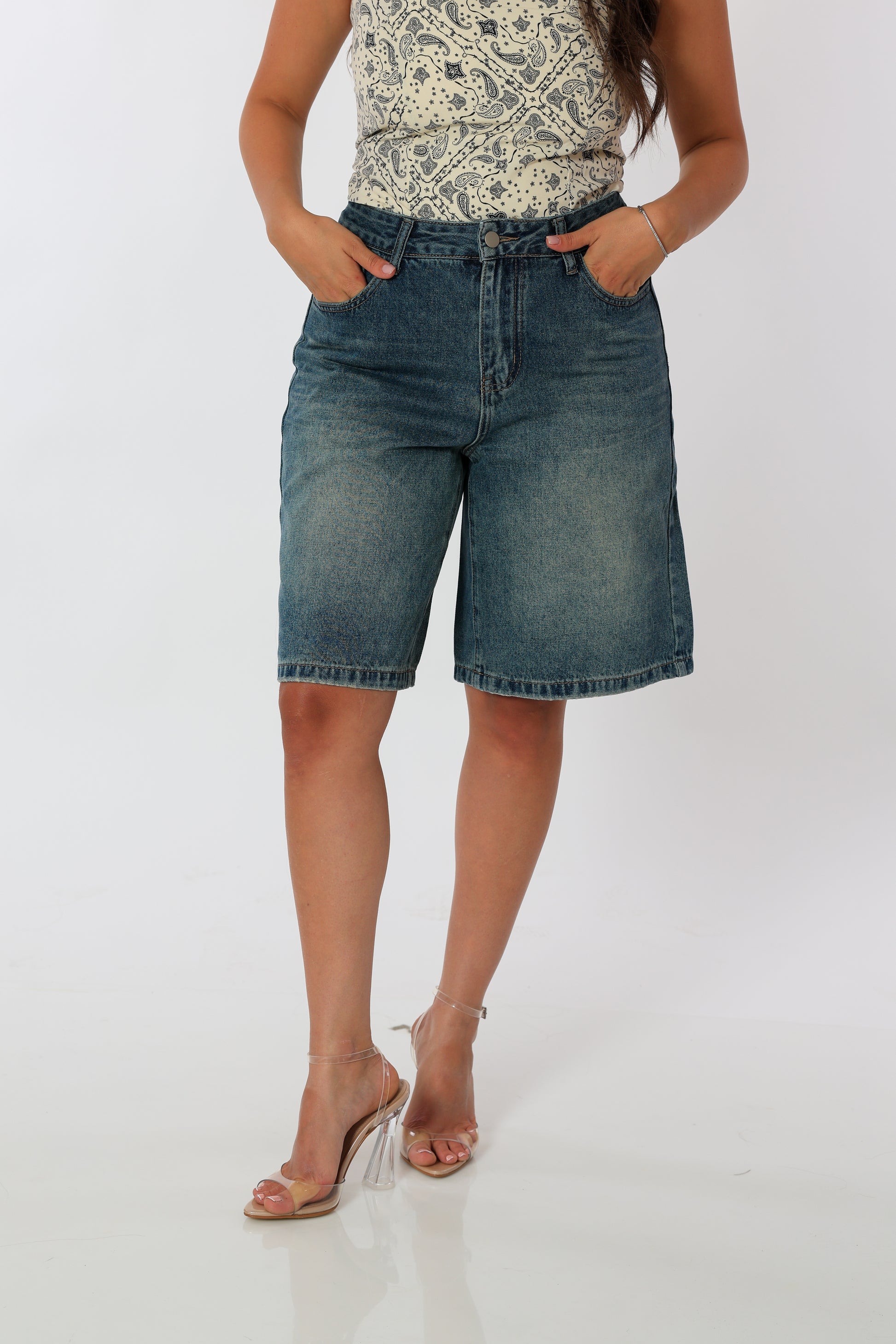 ג'ינס קצר באורך ברמודה בגזרה מתרחבת