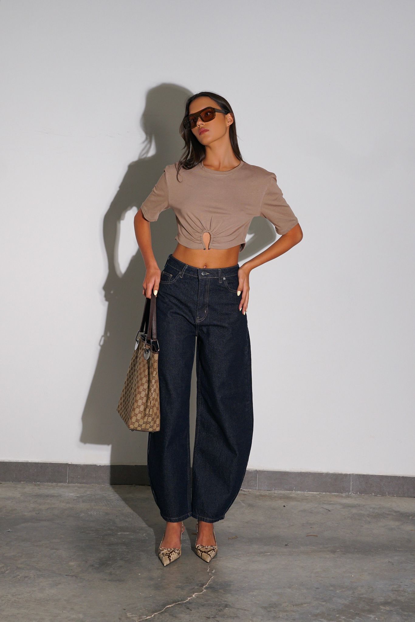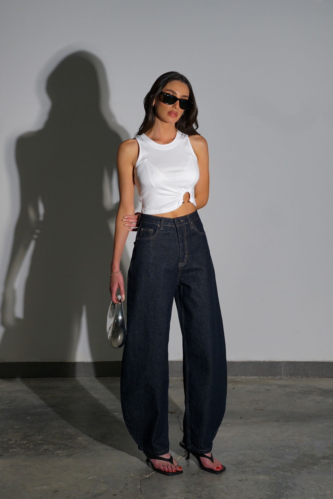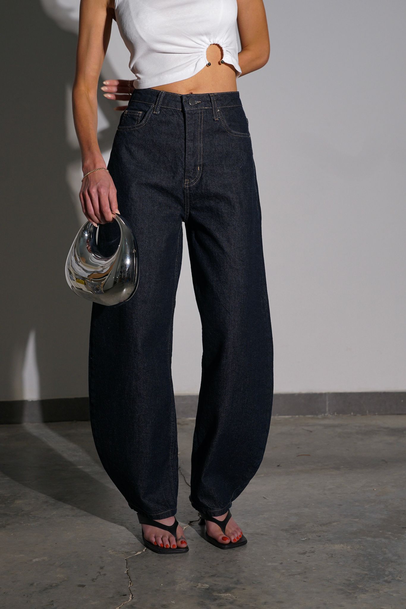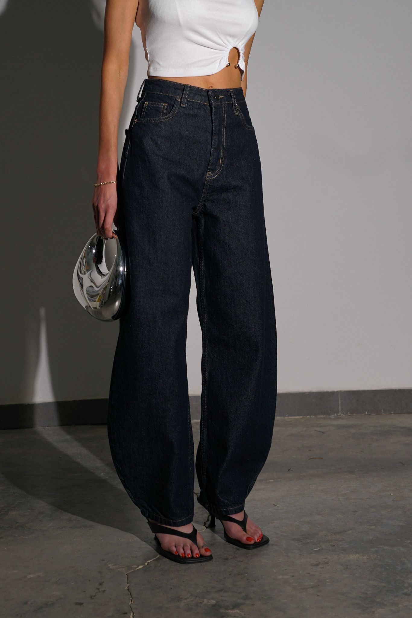 ג'ינס כחול כהה בגזרת בלון