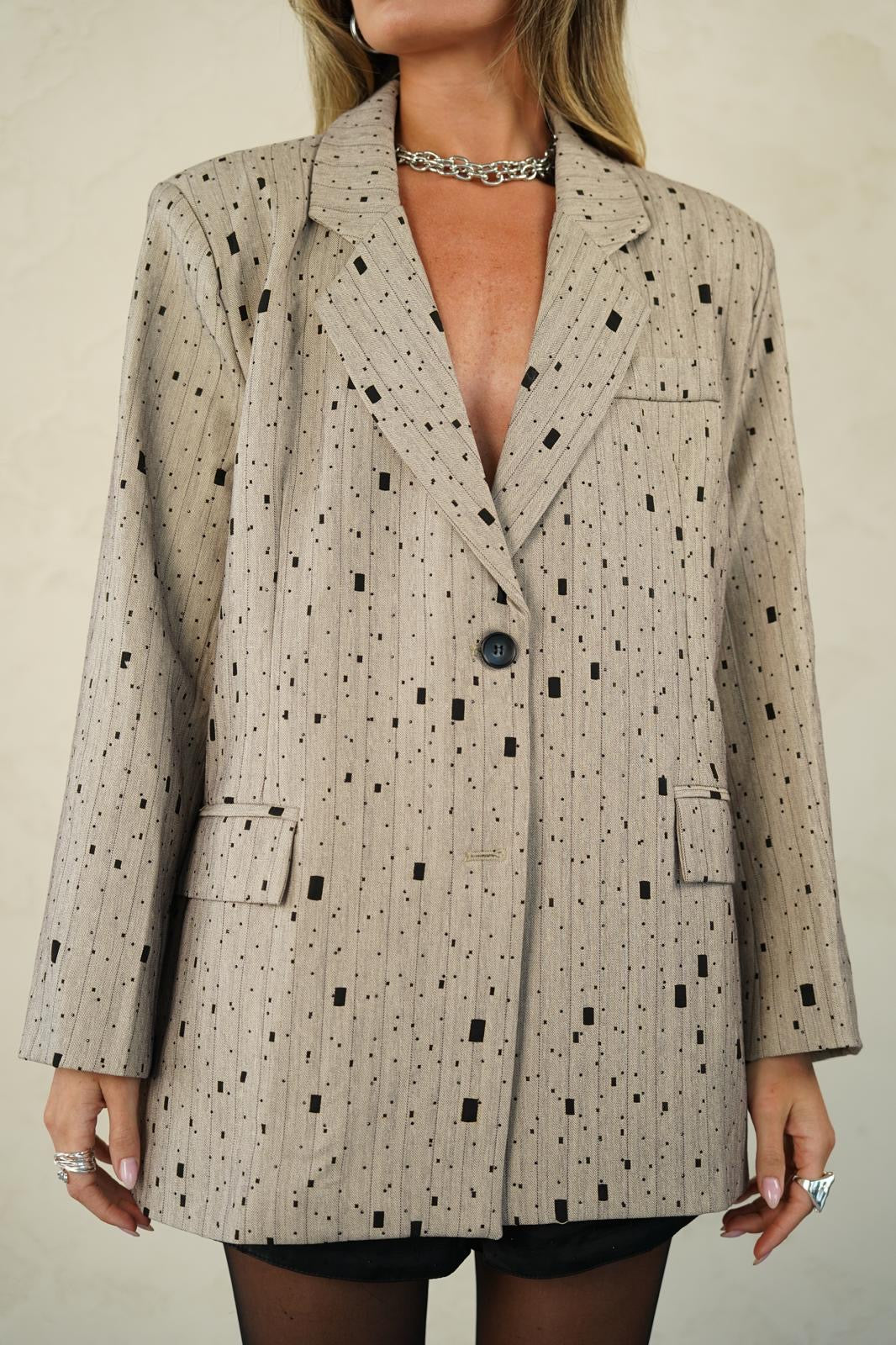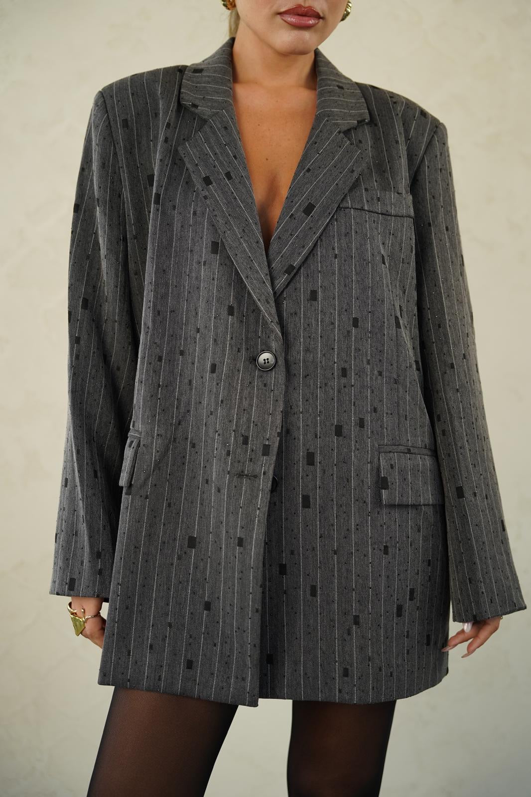 גקט אוברסייז בדוגמת פסים עם אבנים
