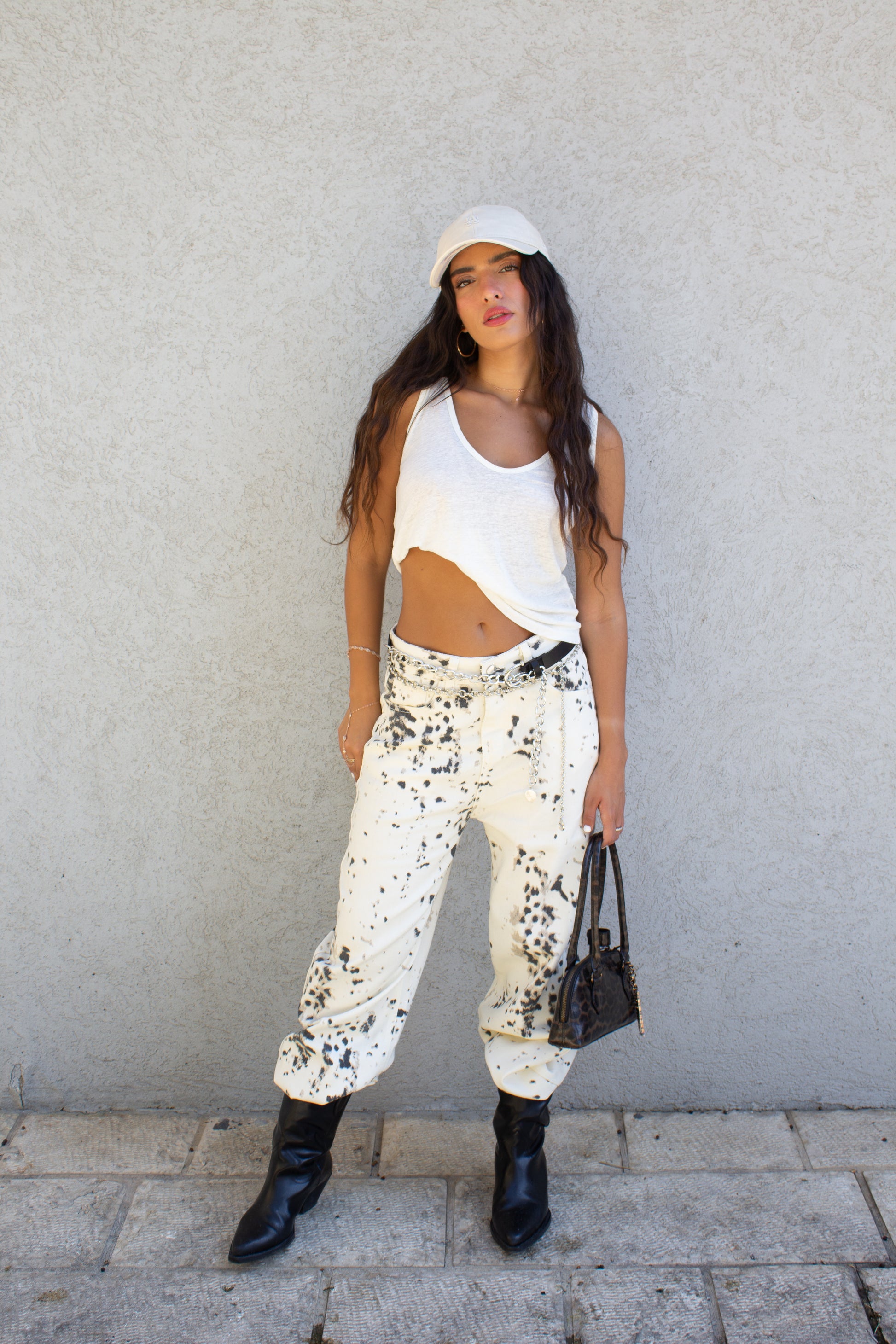 גובה אמצע גזרה ישרה מעט מתרחב ברגליים