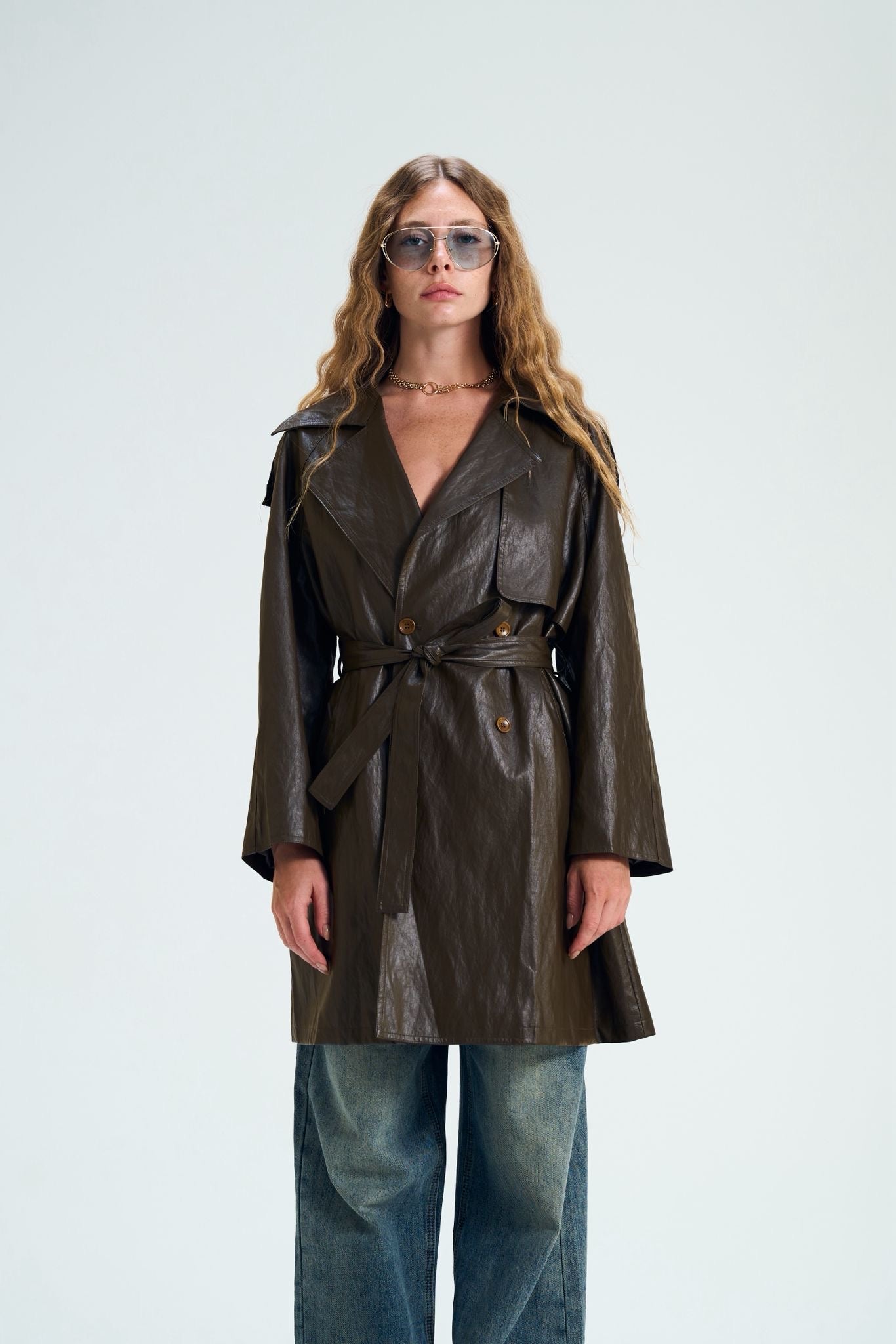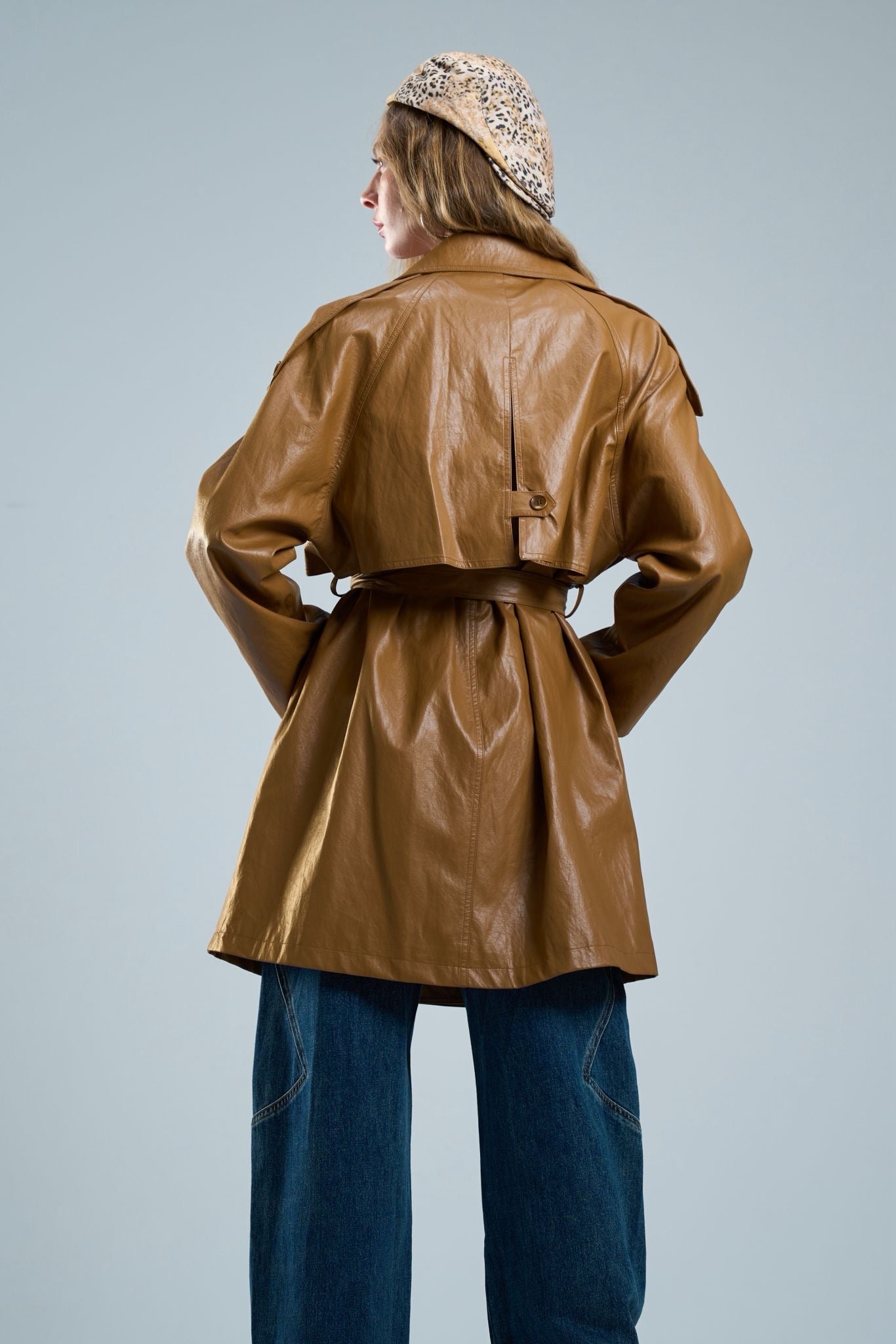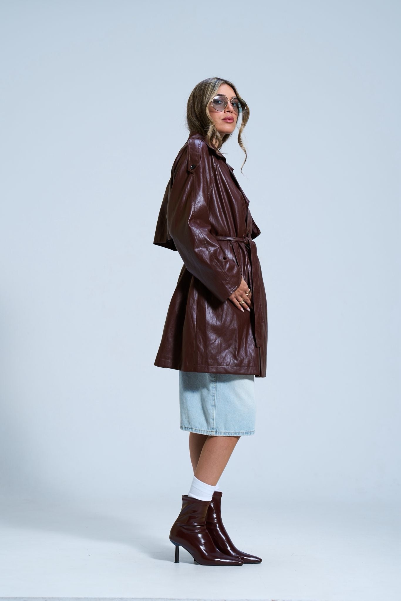 ג׳קט טרנץ דמוי עור בגימור מבריק