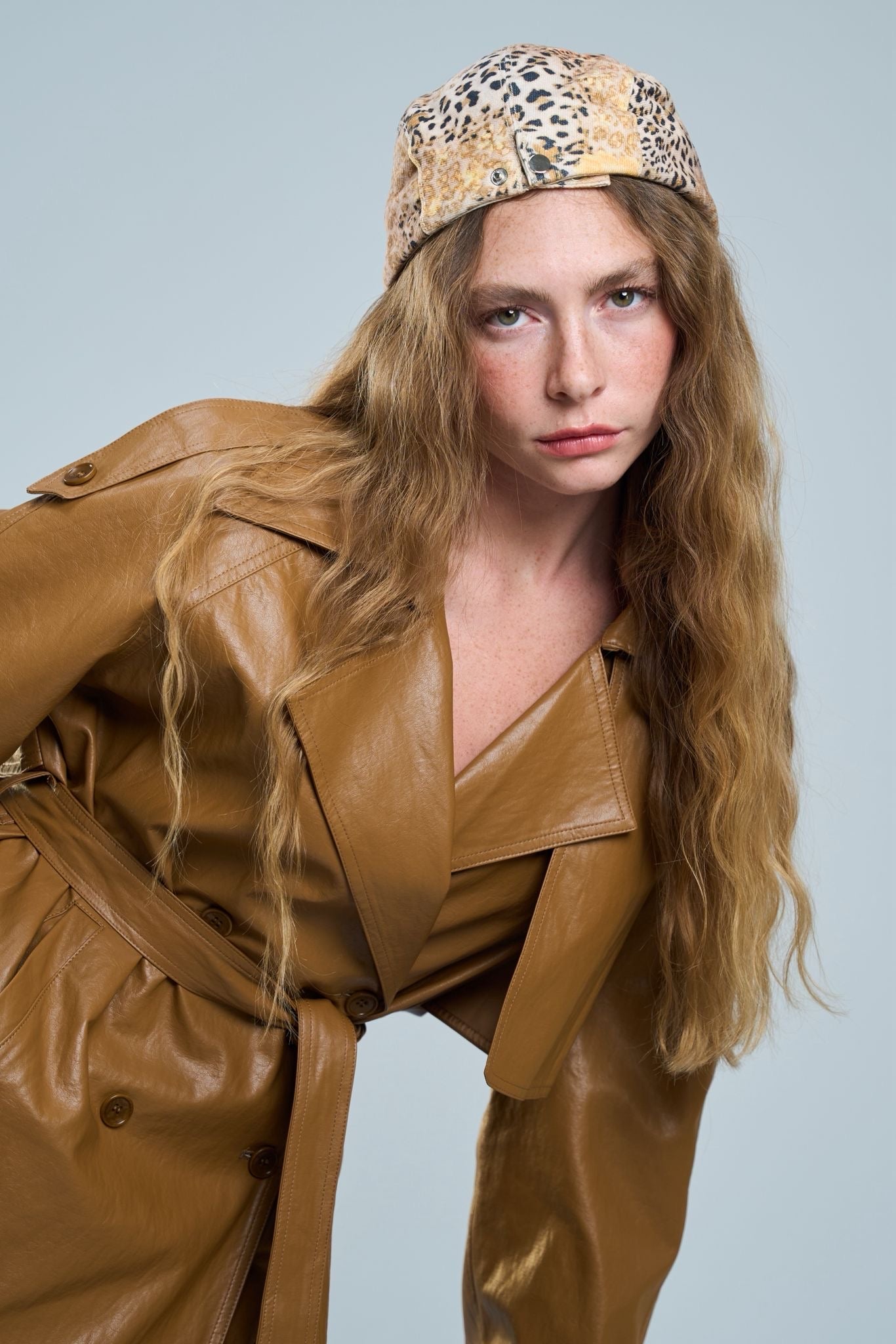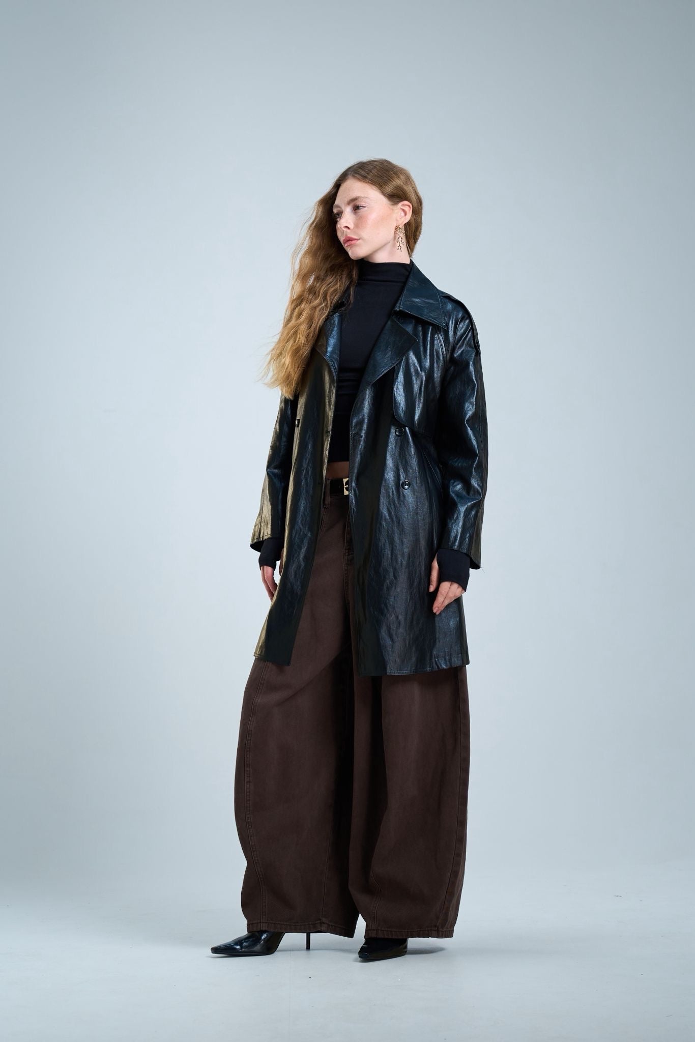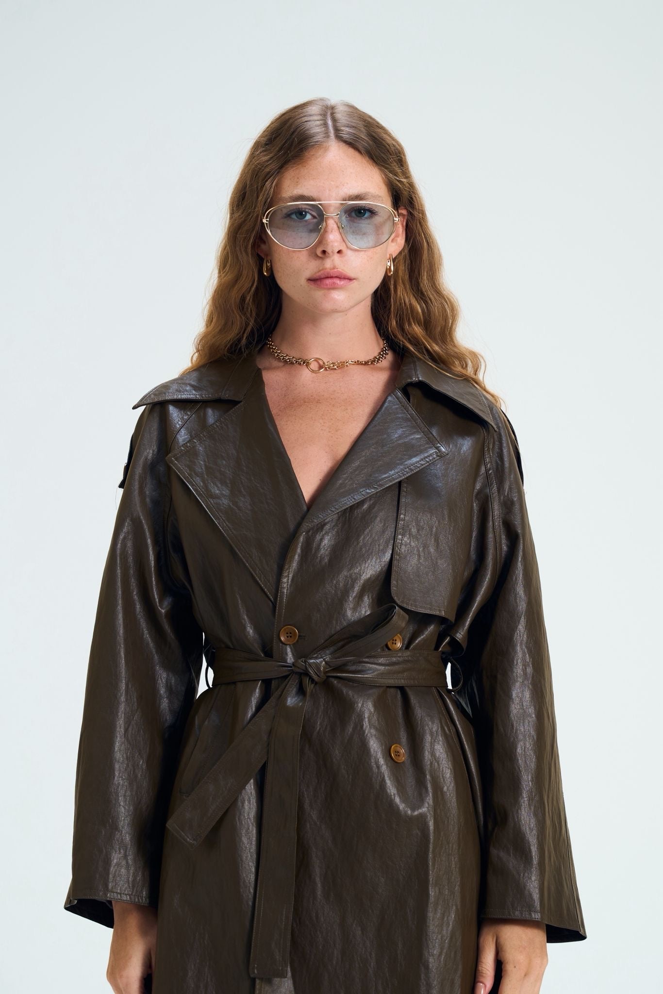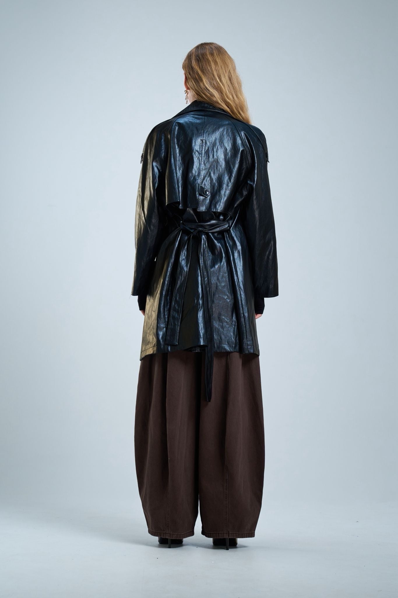 ג׳קט טרנץ דמוי עור בגימור מבריק