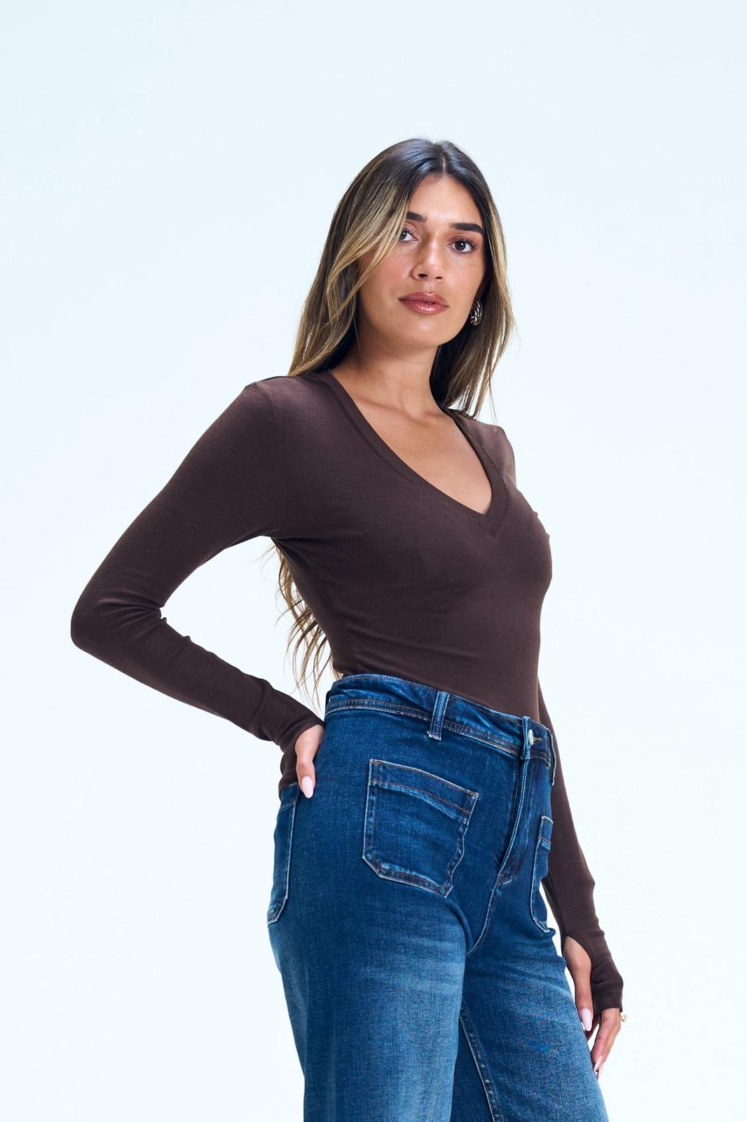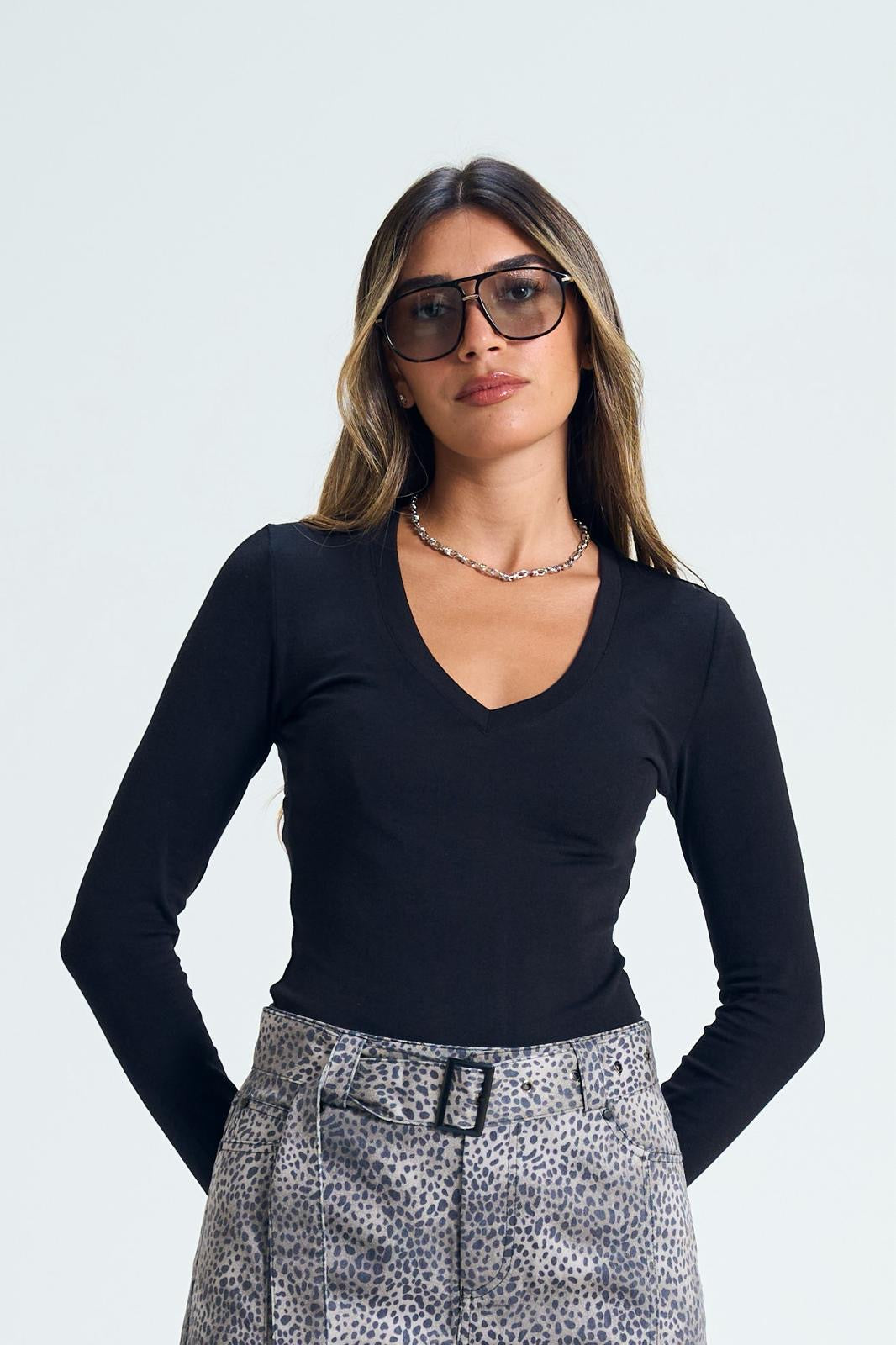 שרוול ארוך כפפה צווארון וי