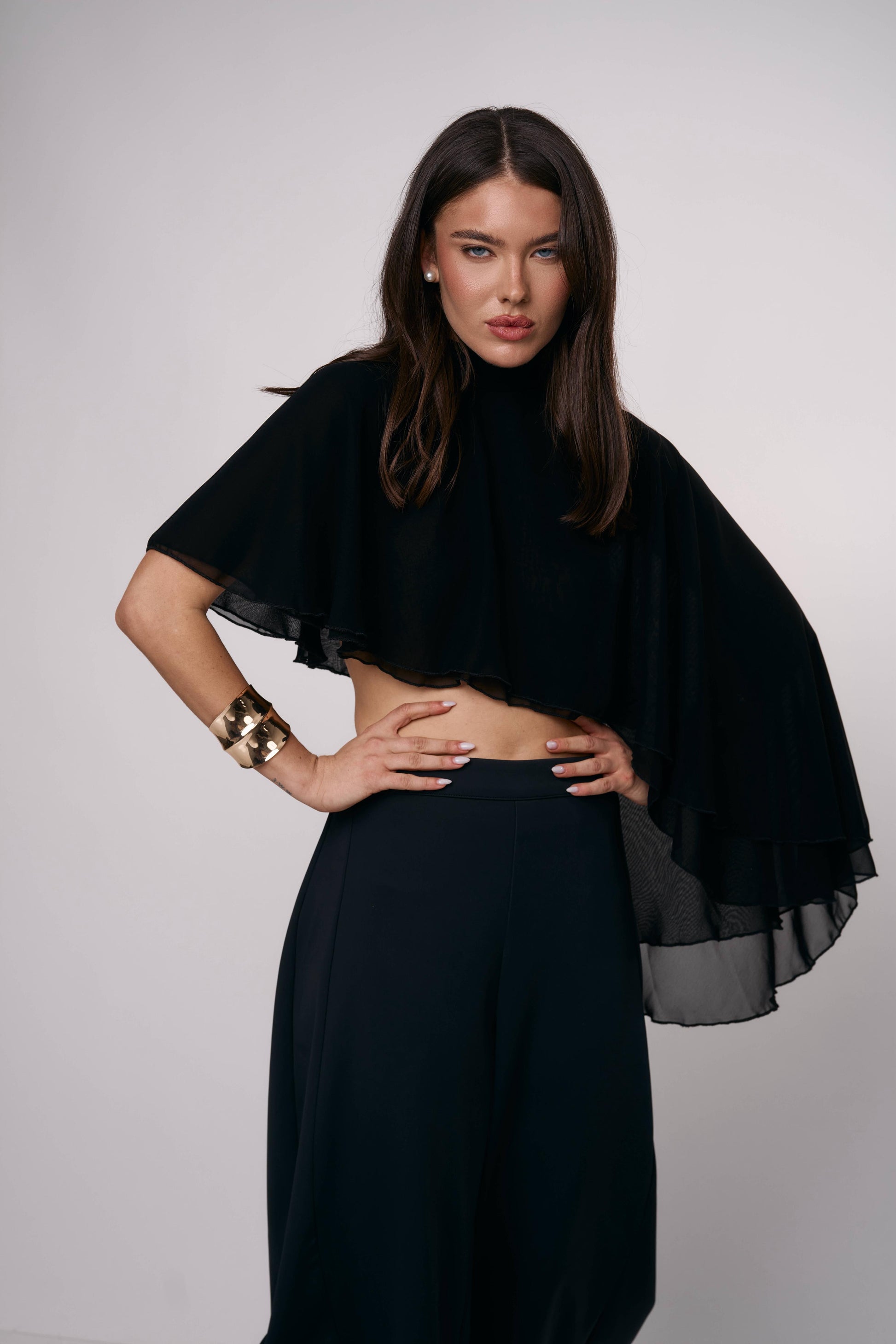 חולצה בסגנון שכמייה מבד שיפון שכבות