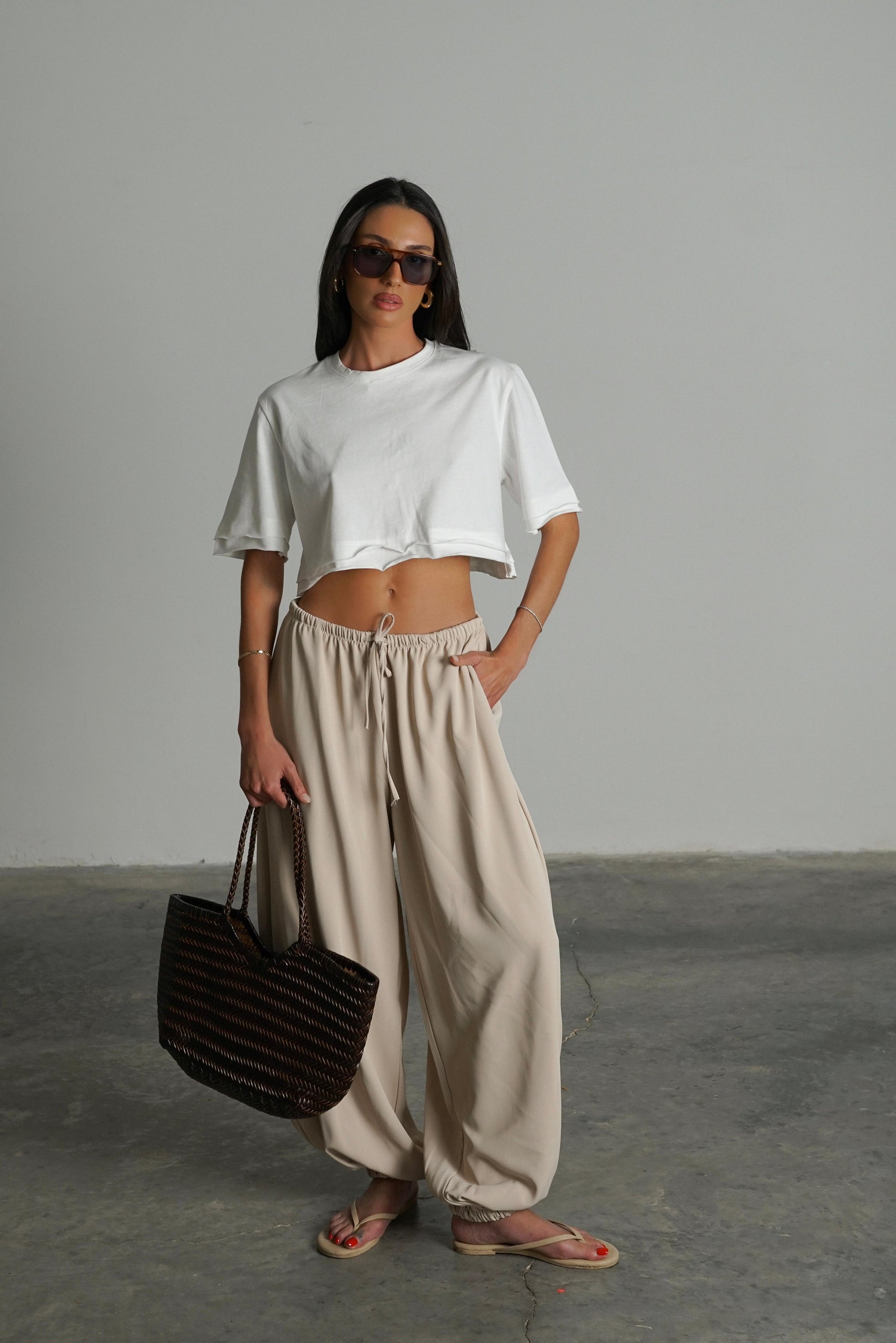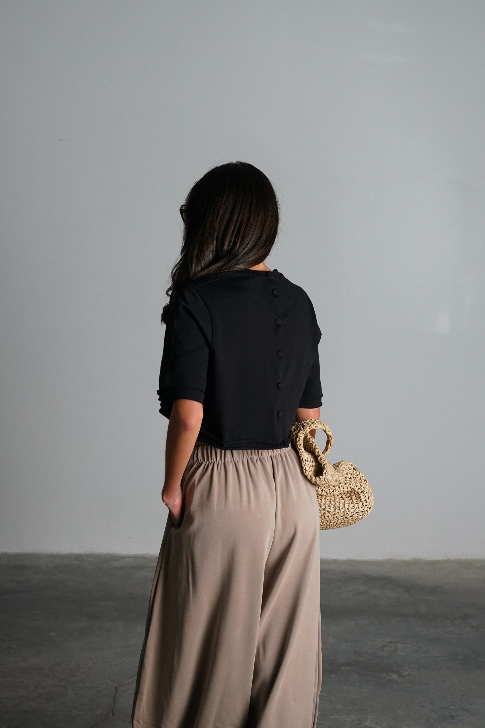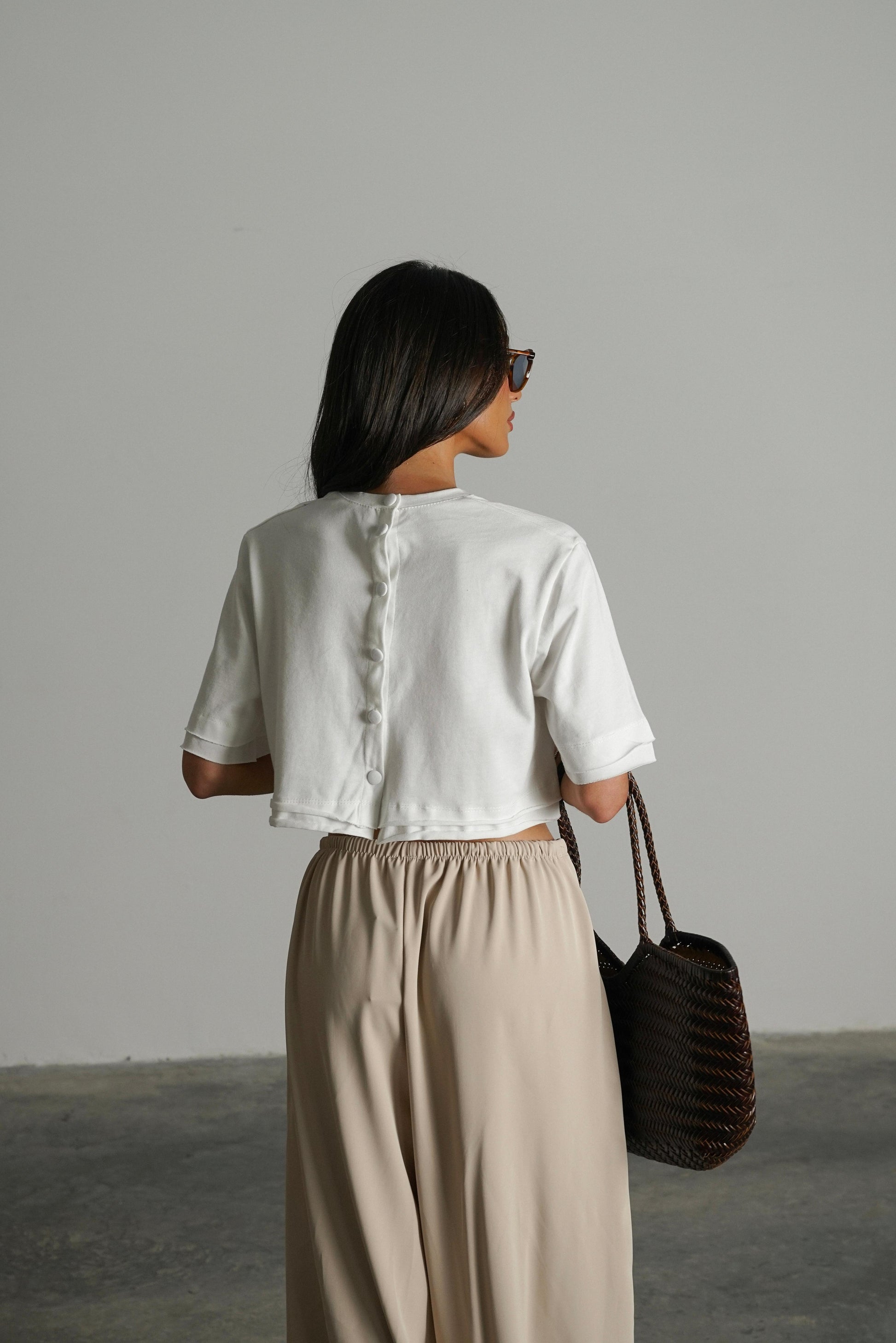 חולצת בייסיק קרופ | מפתח צוואר עגול | סגירת כפתורים מצופים בגב