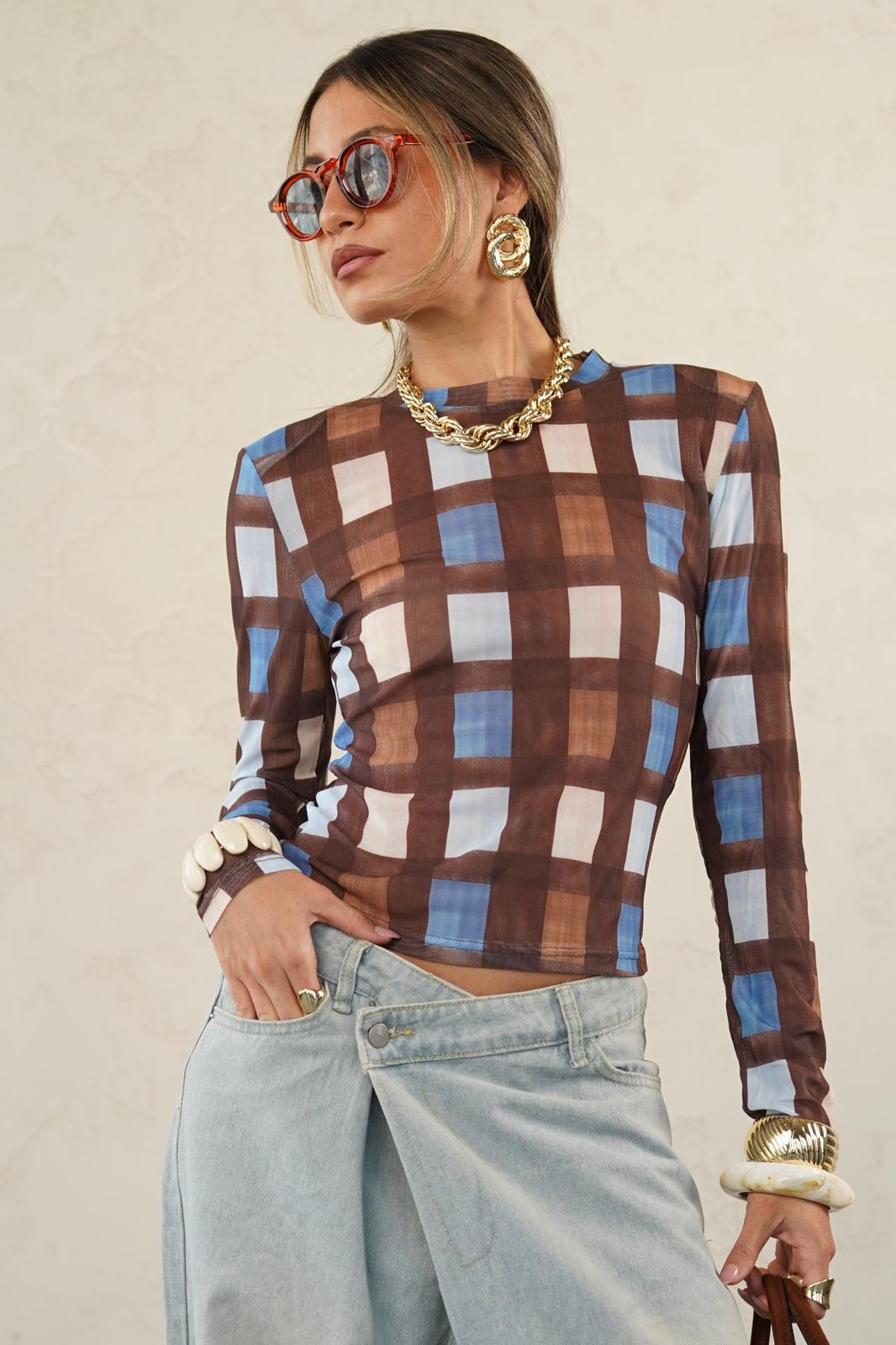 חולצה צמודה מבד שיפון מודפס
