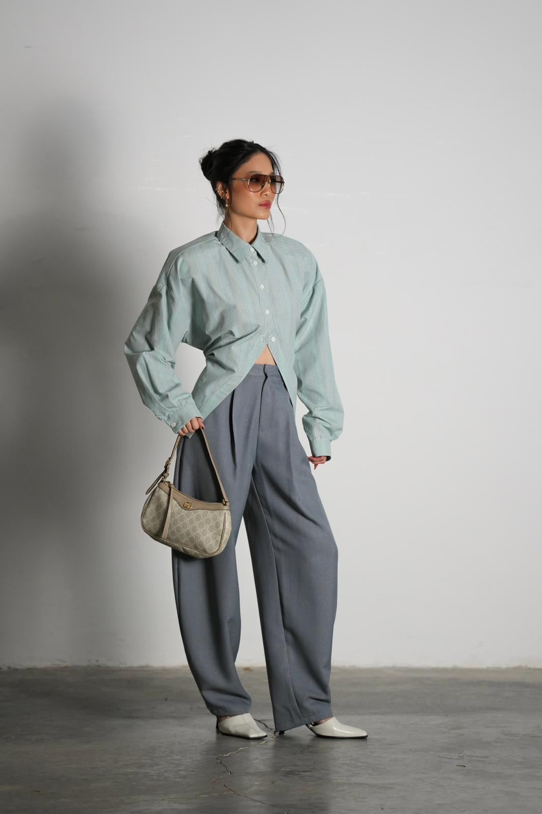 חולצה מכופתרת עם מפתח קדמי אלכסון