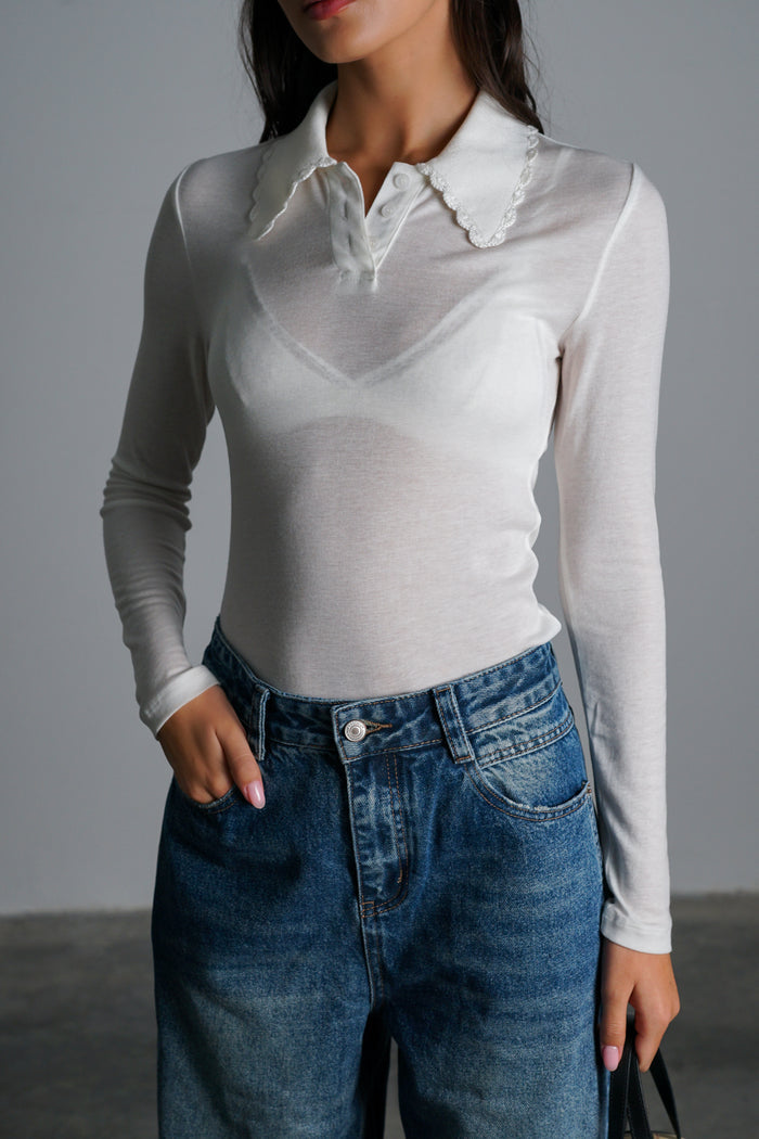 חולצה מבד כותנה בגזרת פולו עם עיטורים בצווארון