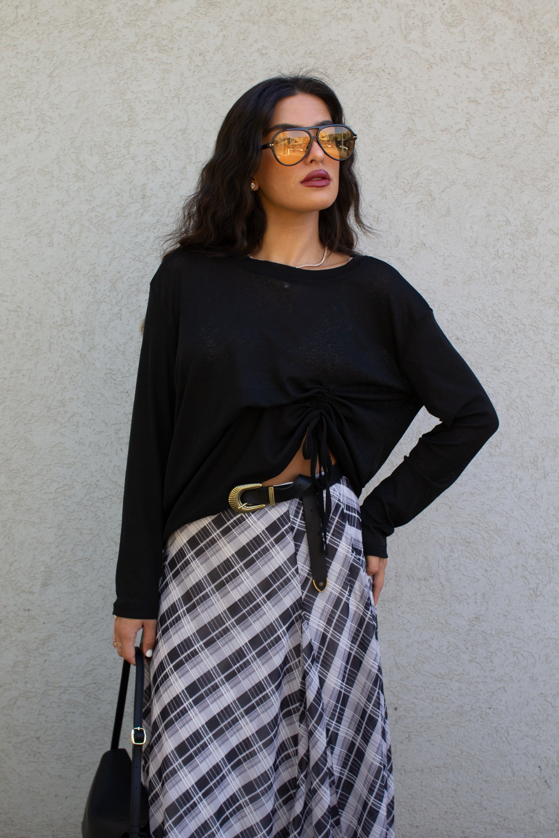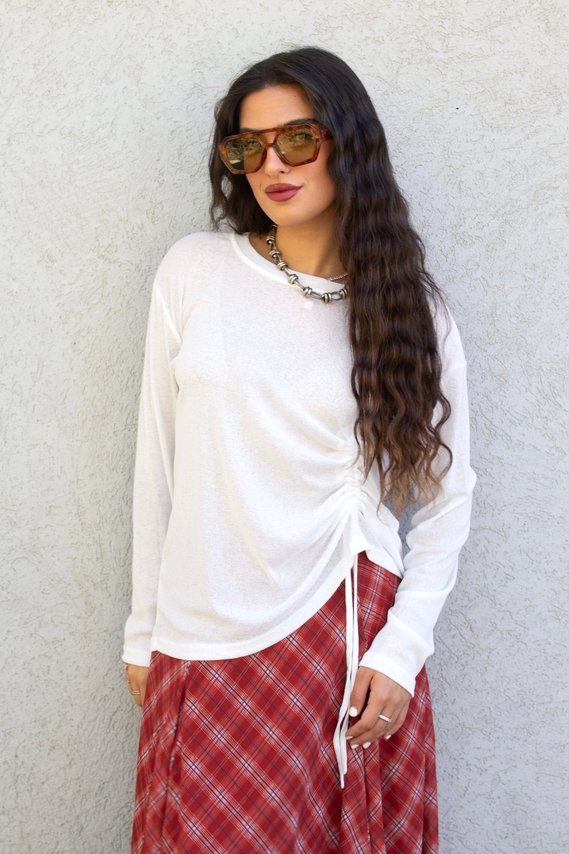 חולצה בגזרה רחבה מבד דמוי פשתן דק עם מעט שקיפות