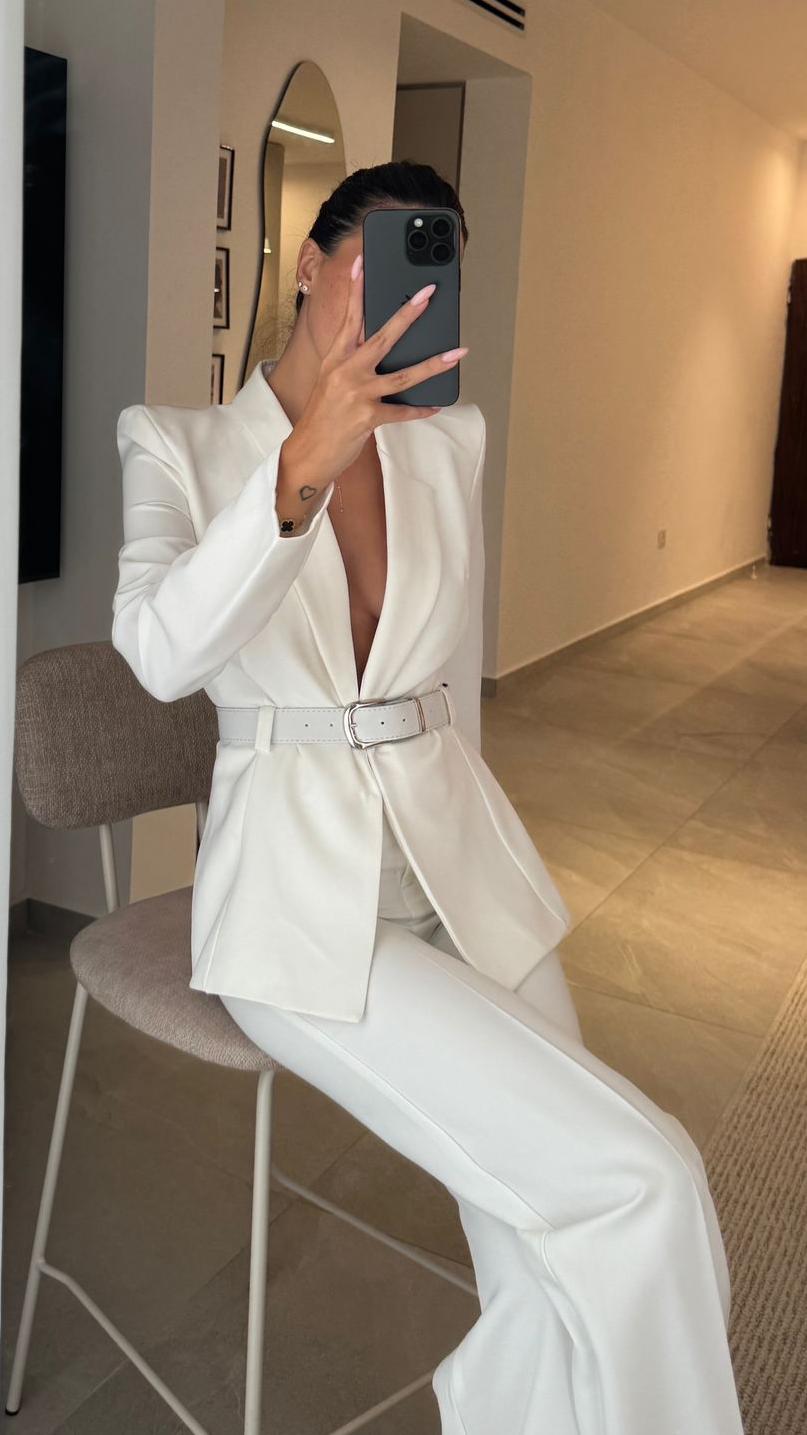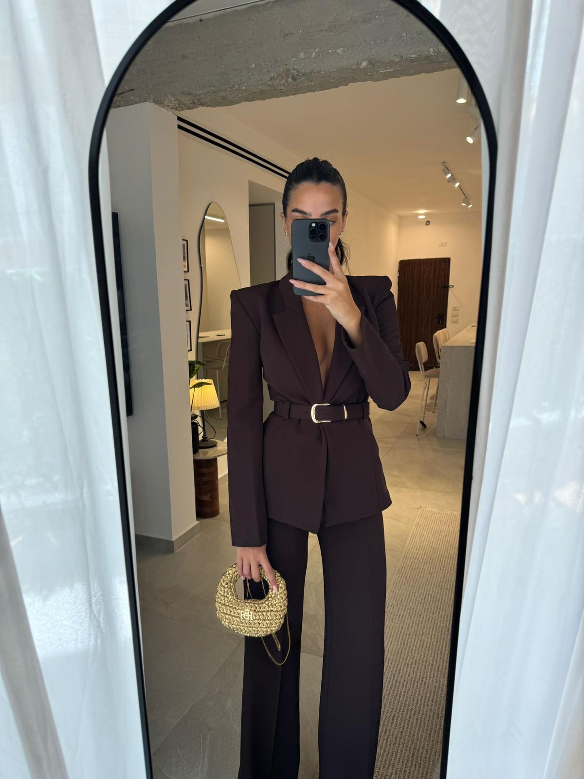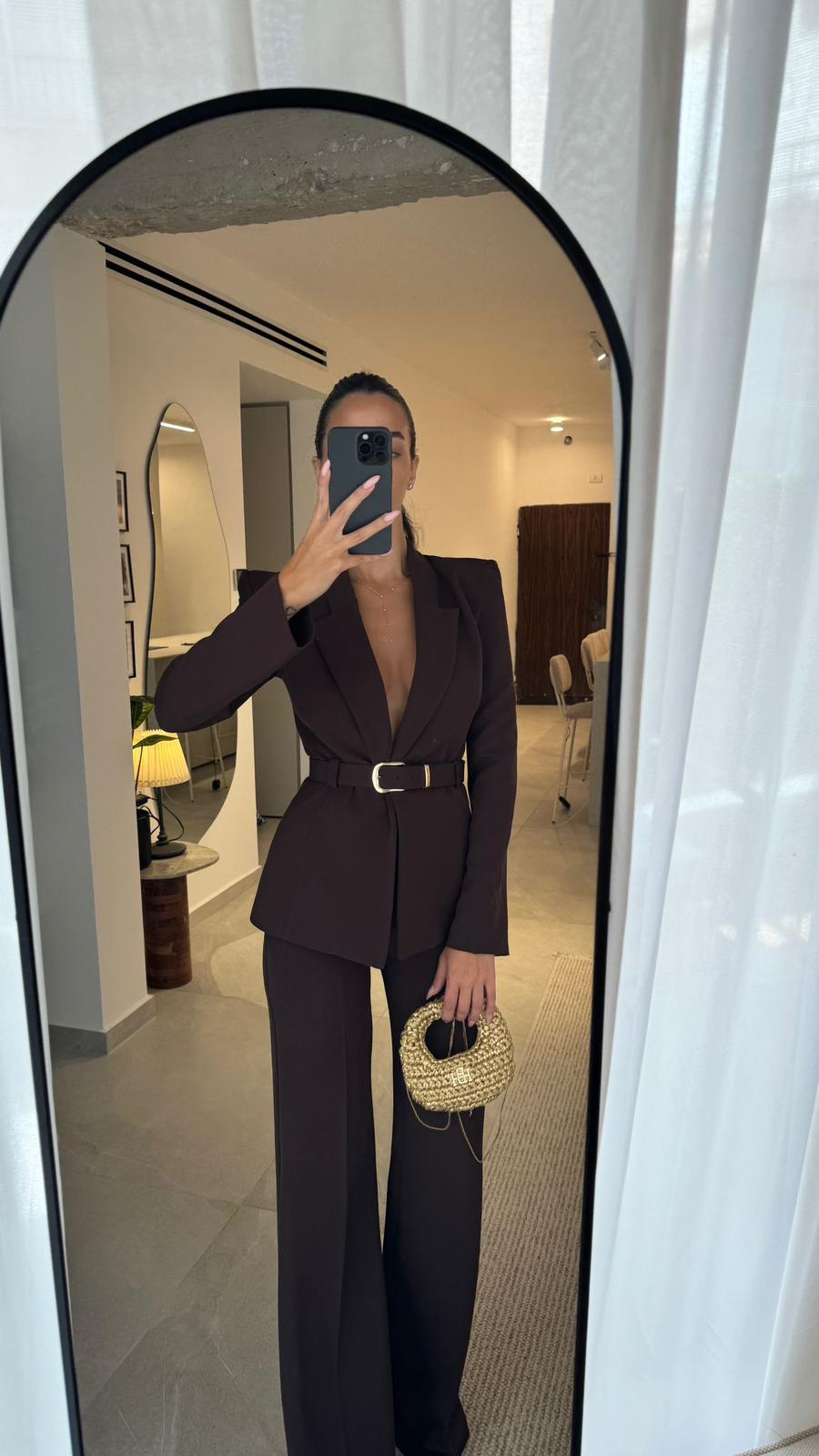ג'קט עם כריות בכתפיים ושילוב חגורה