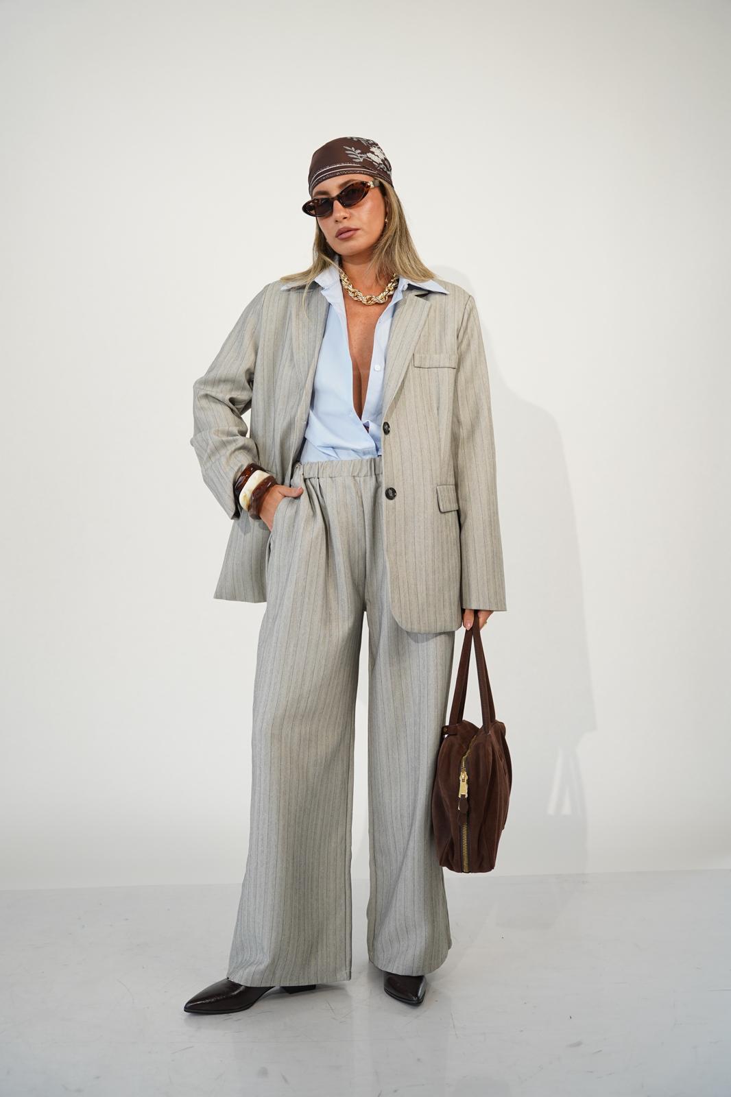 החליפה קיימת באפור פסים, קאמל פסים , אפור כהה פסים