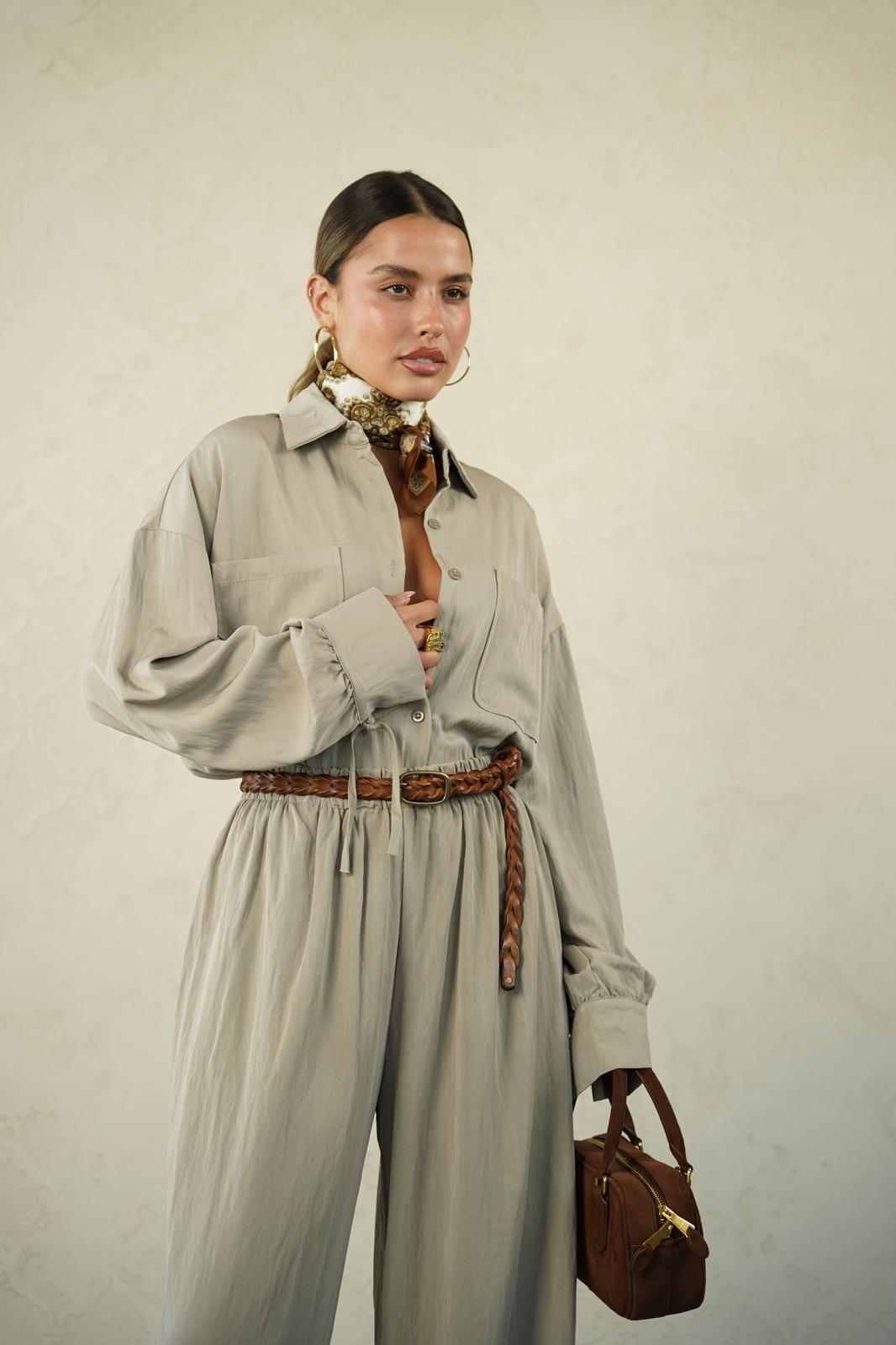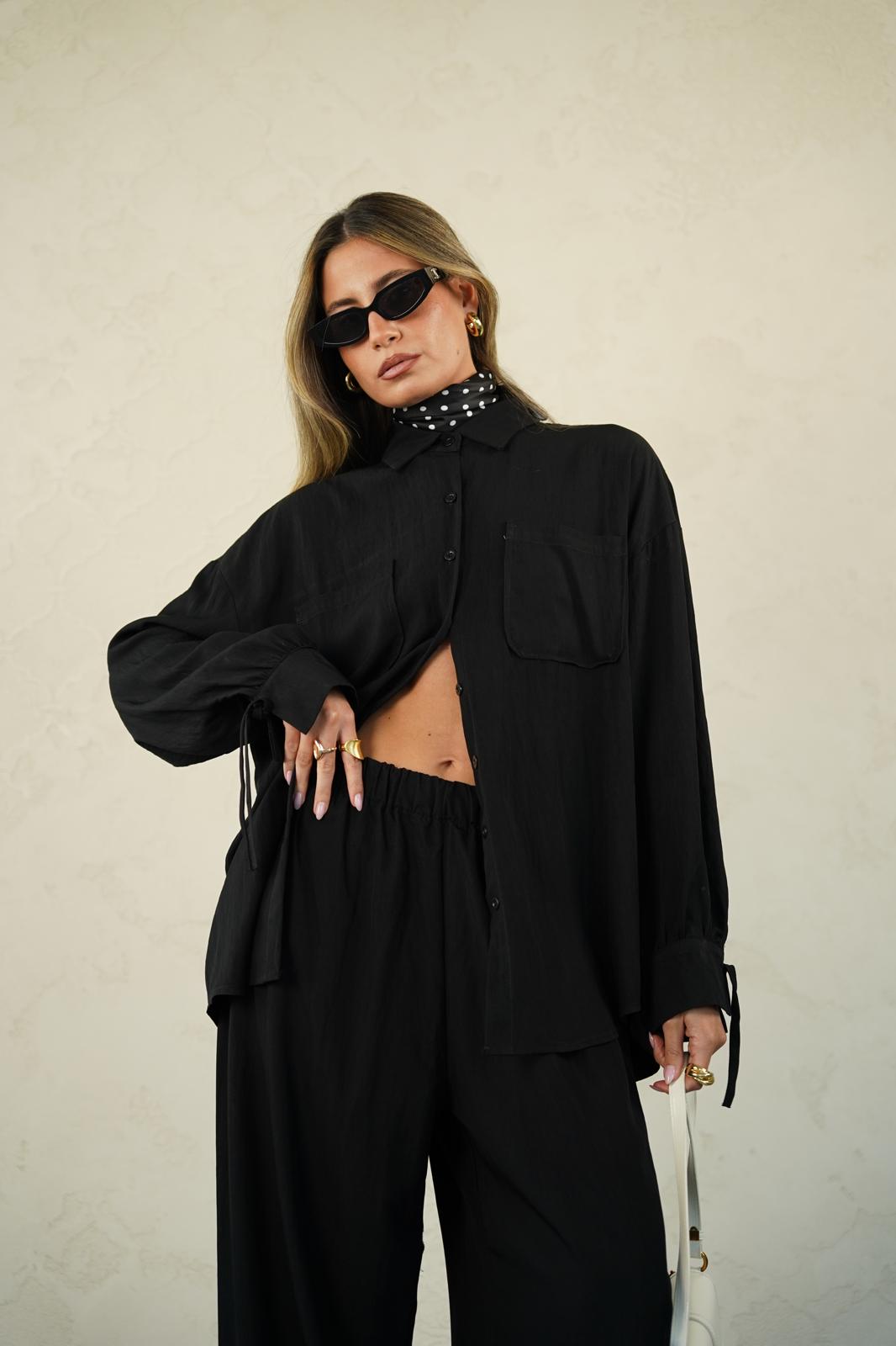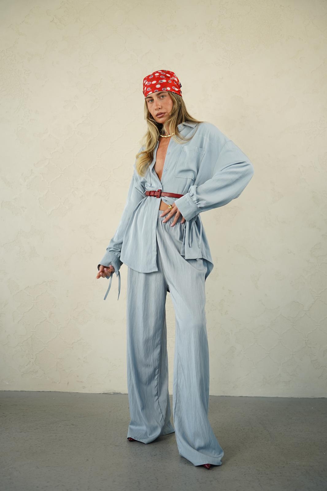 חולצה מכופתרת עם קשירה עדינה במנגט
