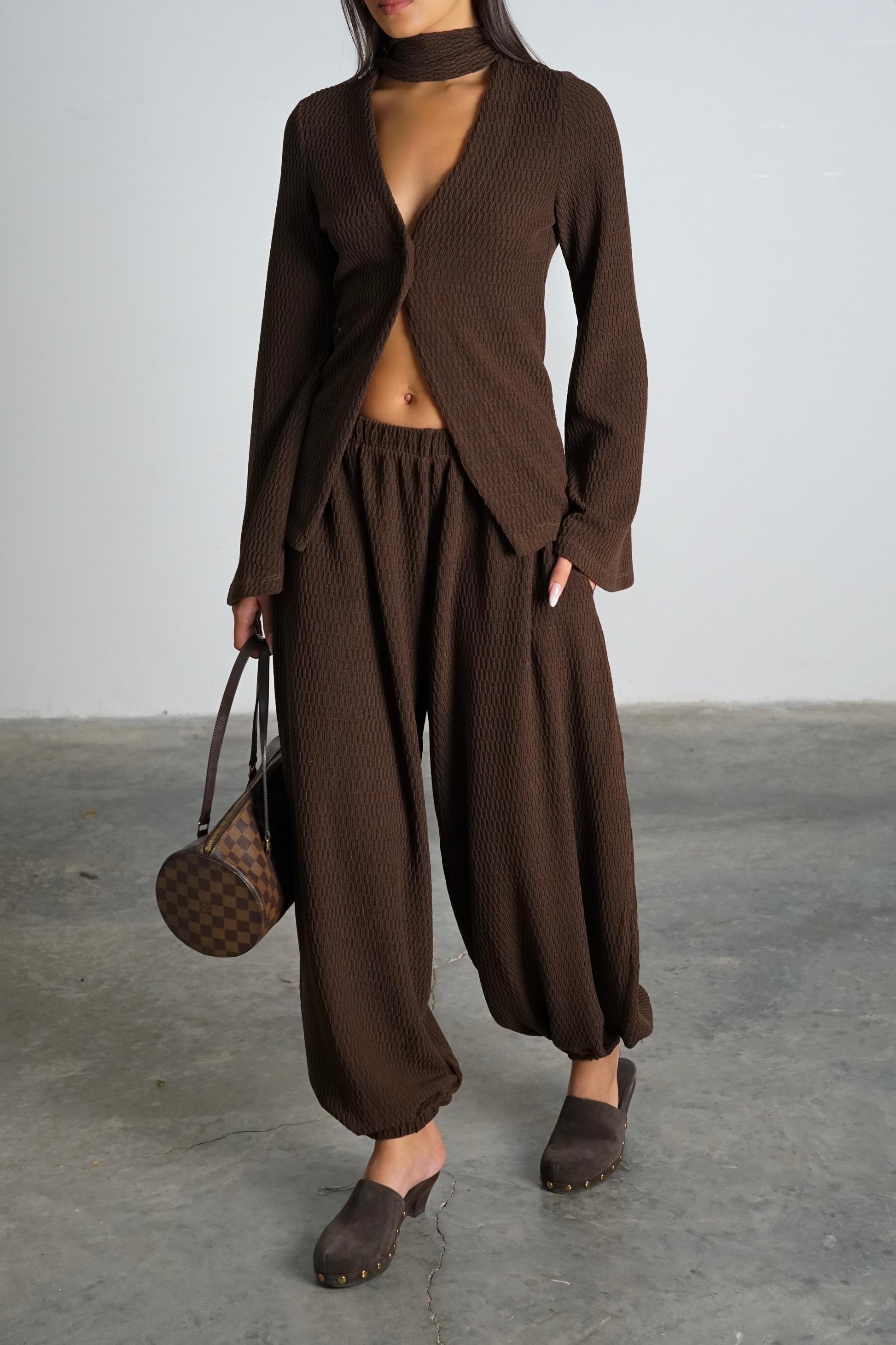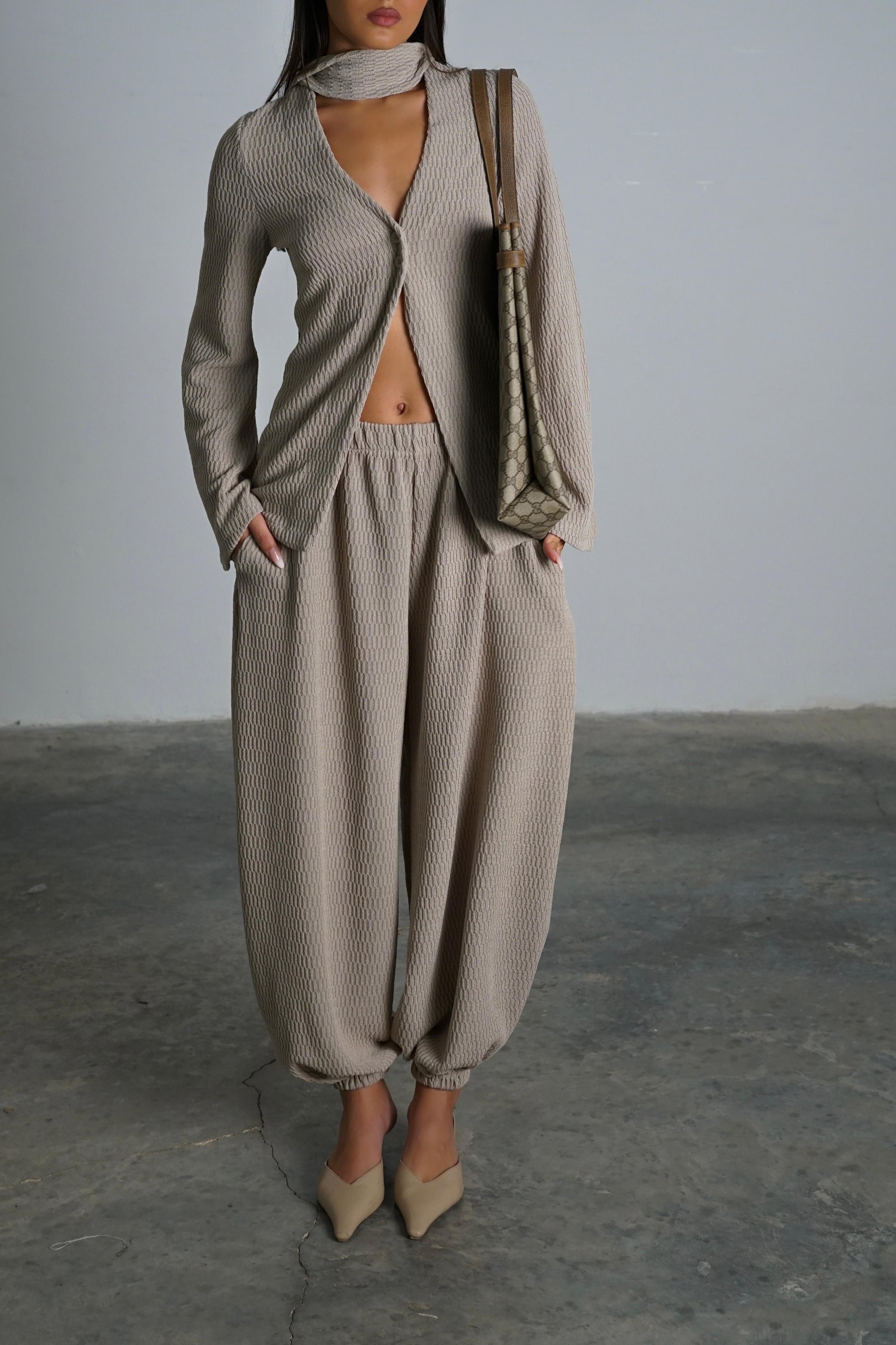 חליפה מבד סריג עם טקסטורה