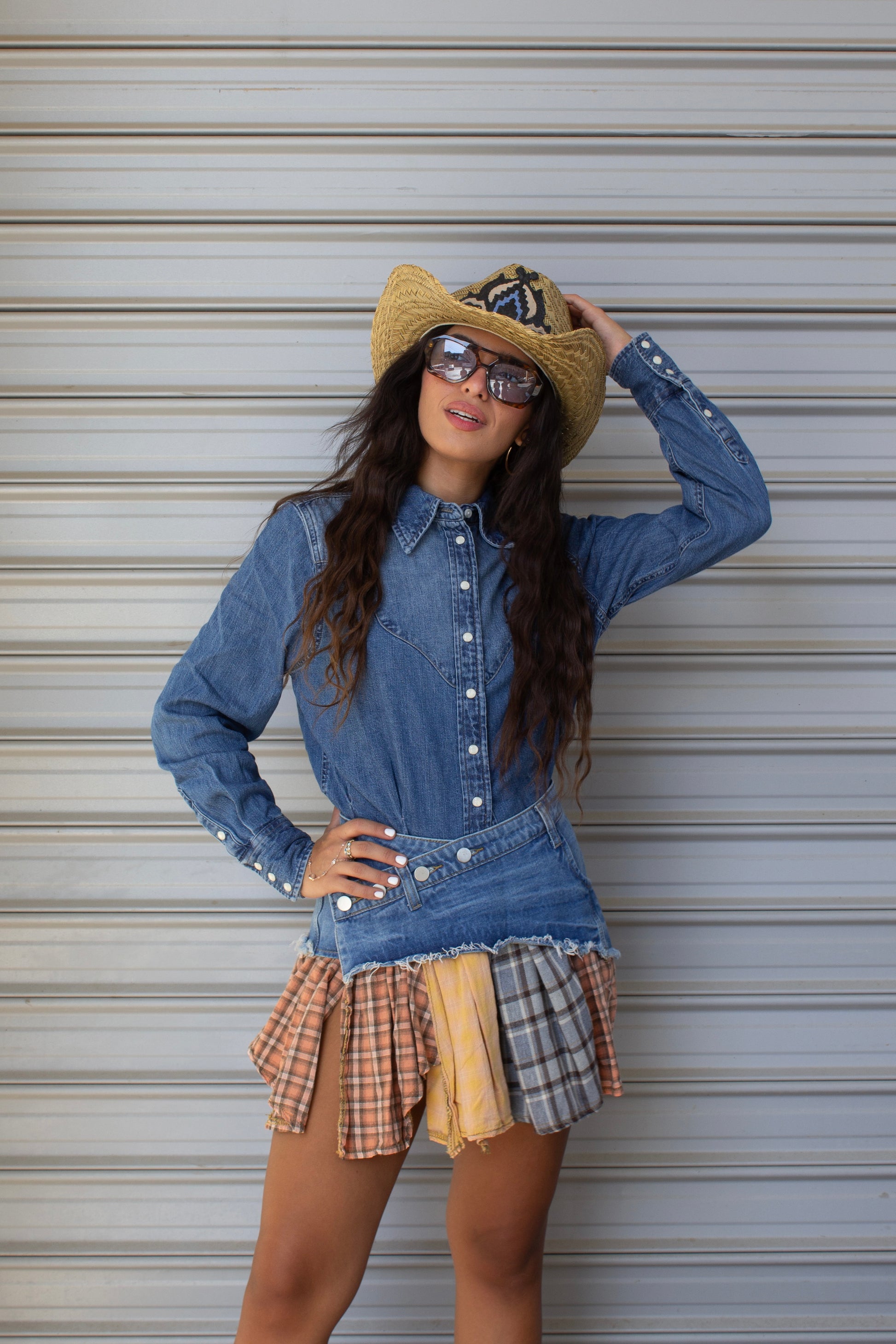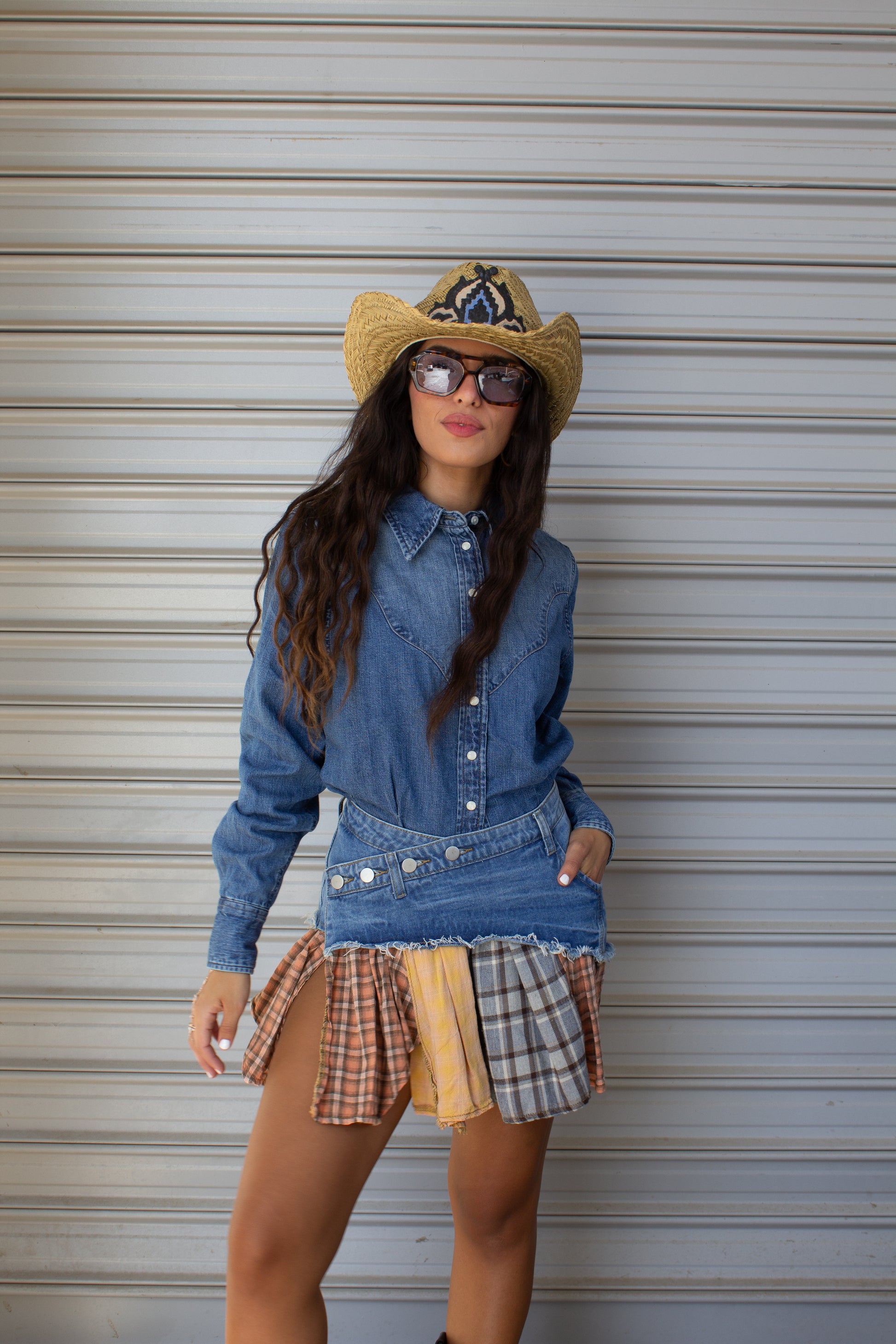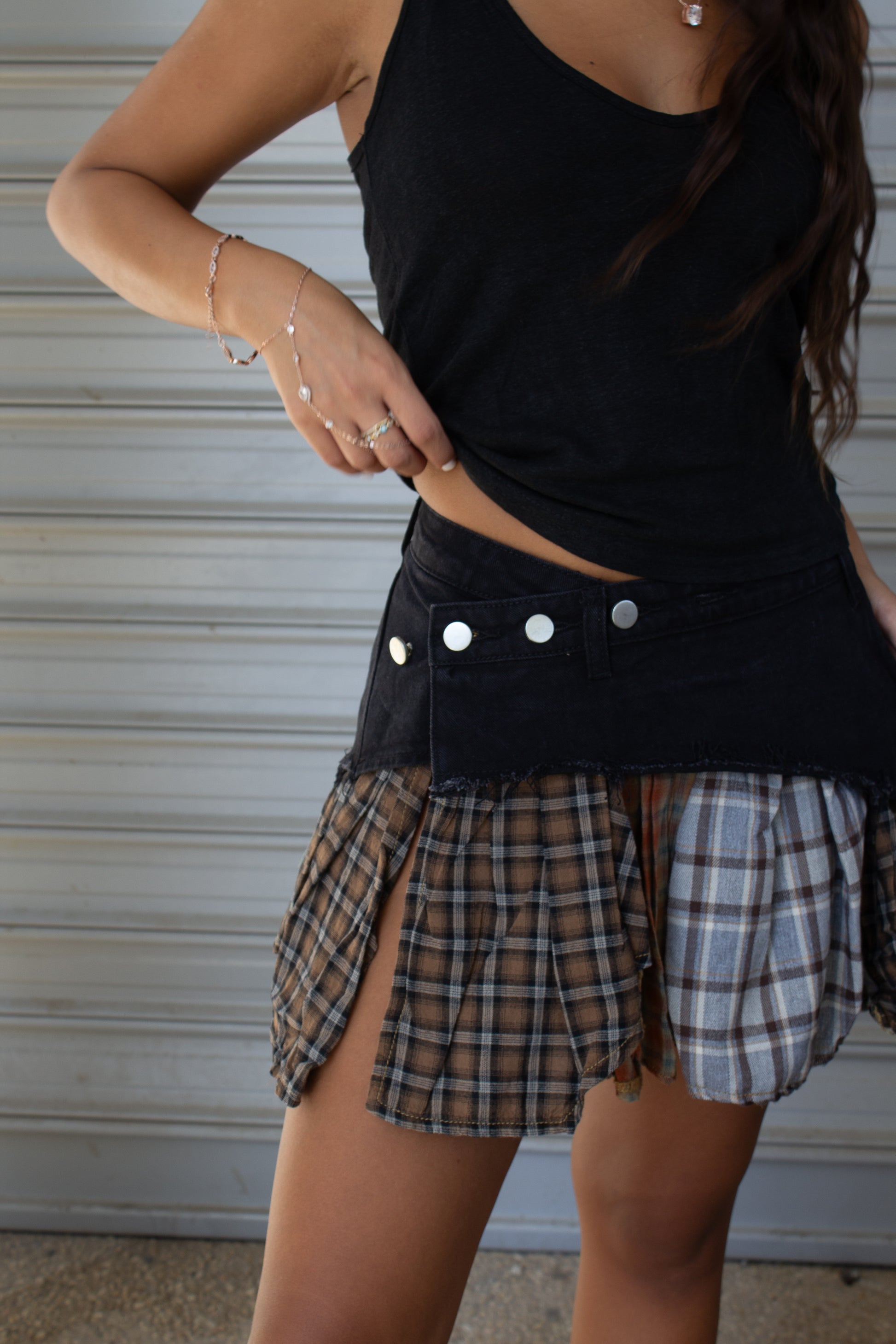 חלק עליון ג׳ינס בגזרה אלכסונית עם סגירת כפתורים