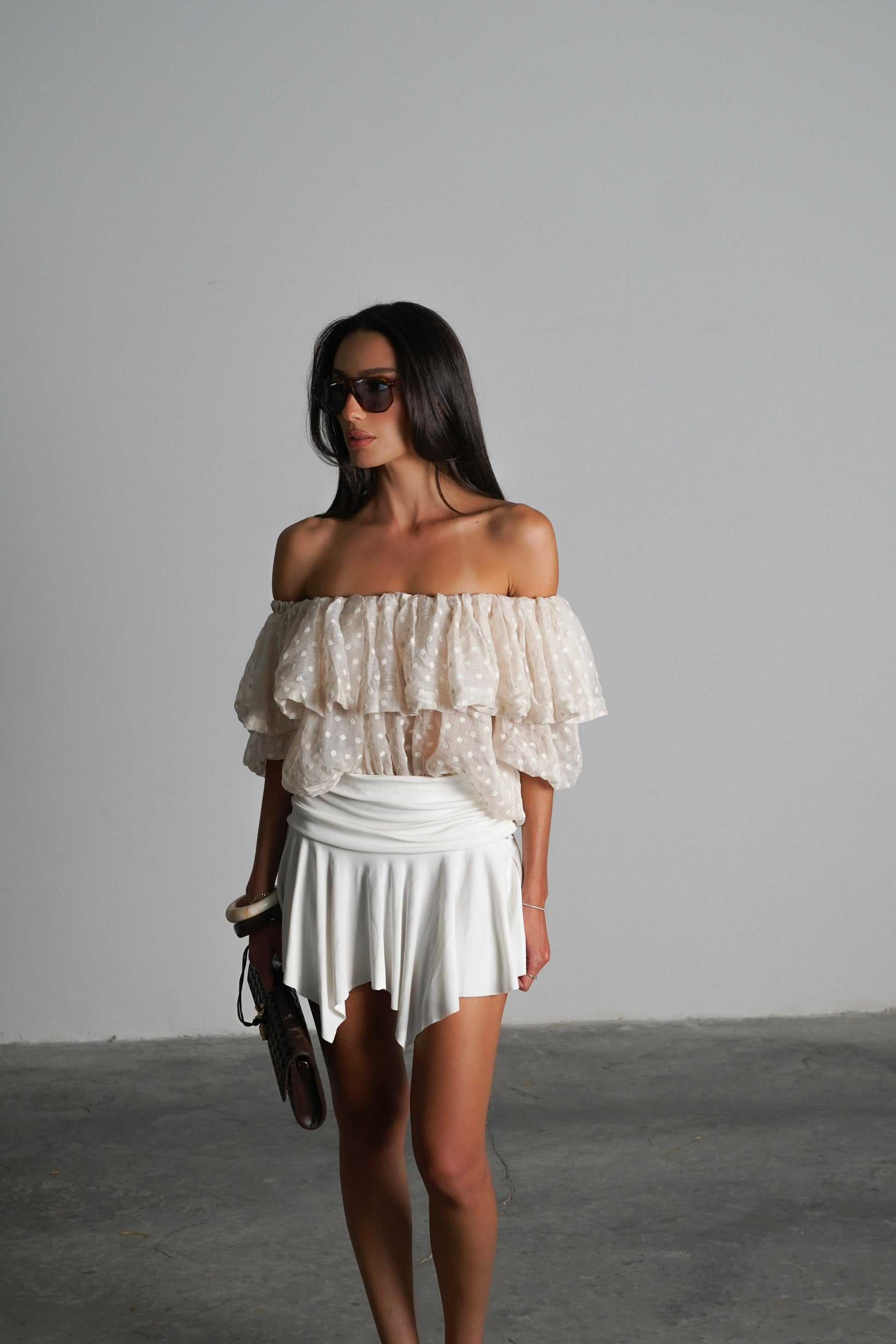 חצאית מיני עם כיווצים עדינים בחלק העליון