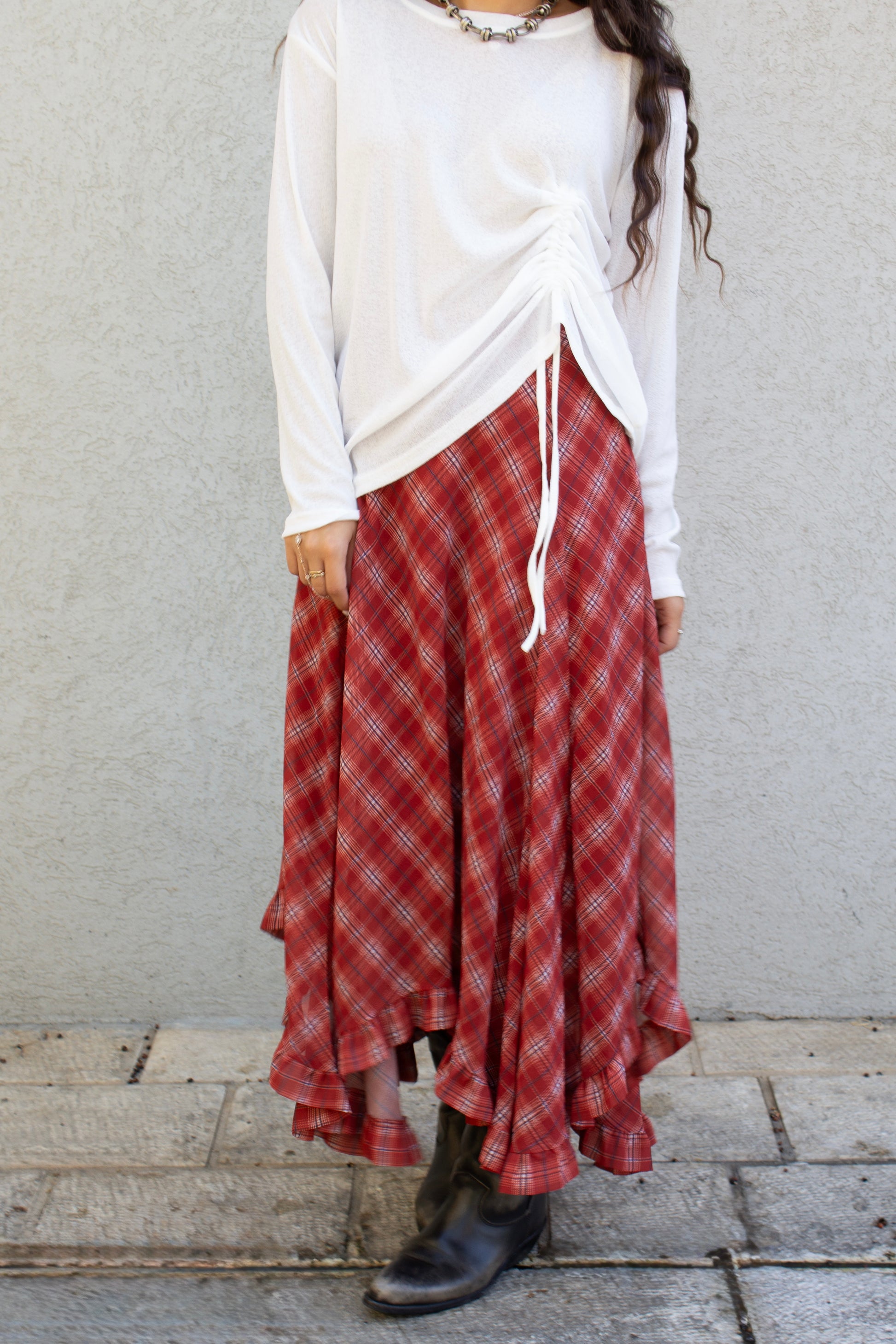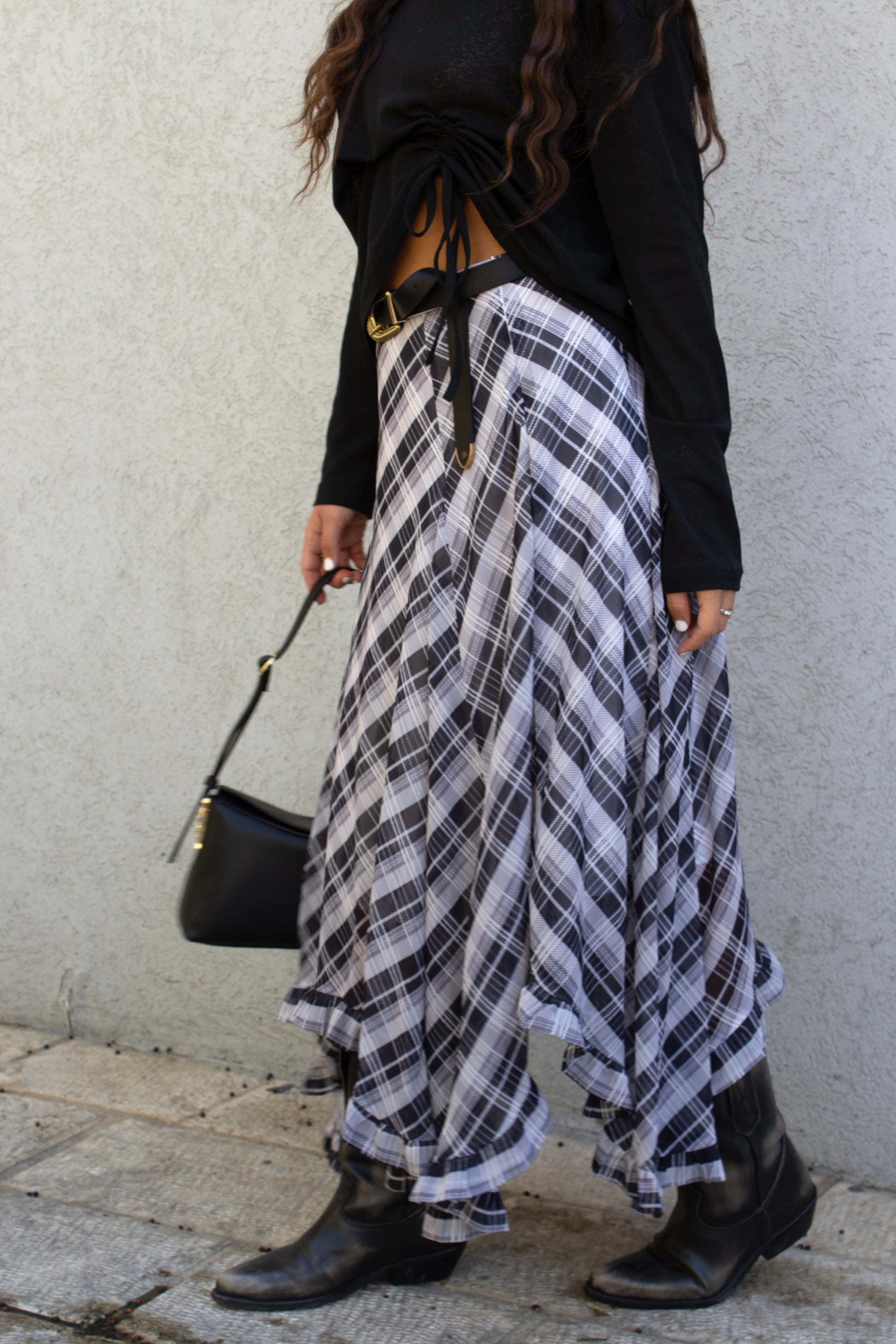 חצאית מידי אסימטרית מבד קליל ונעים