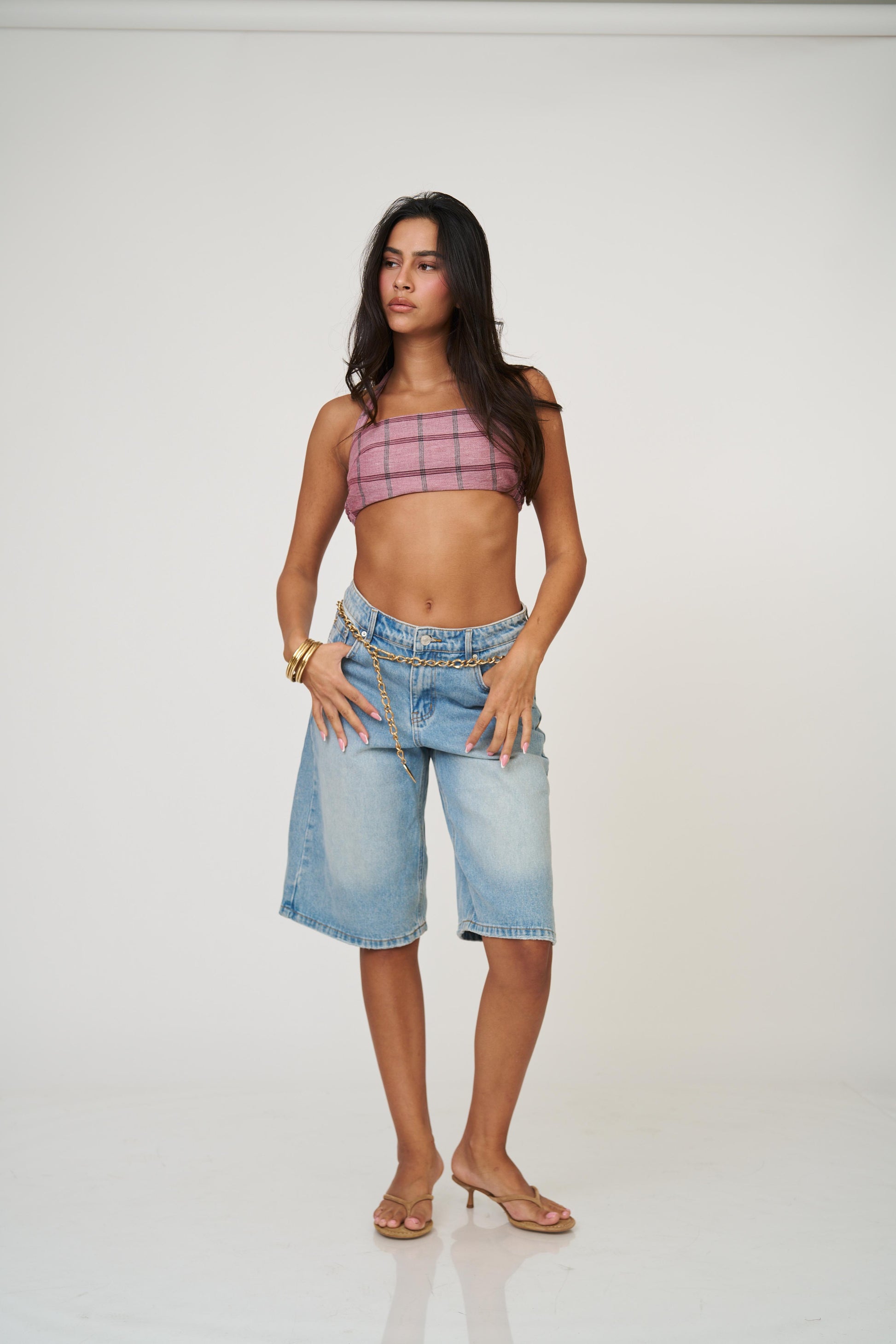 טופ בשילוב קשירה הדפס משבצות