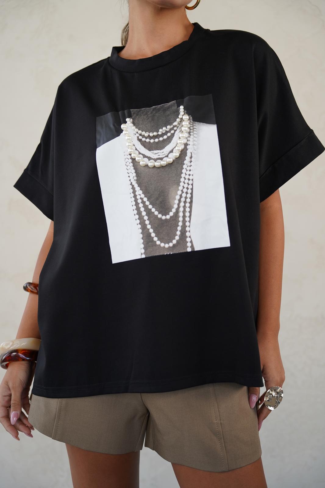 טישרט אוברסייז איכותית בשילוב של פנינים