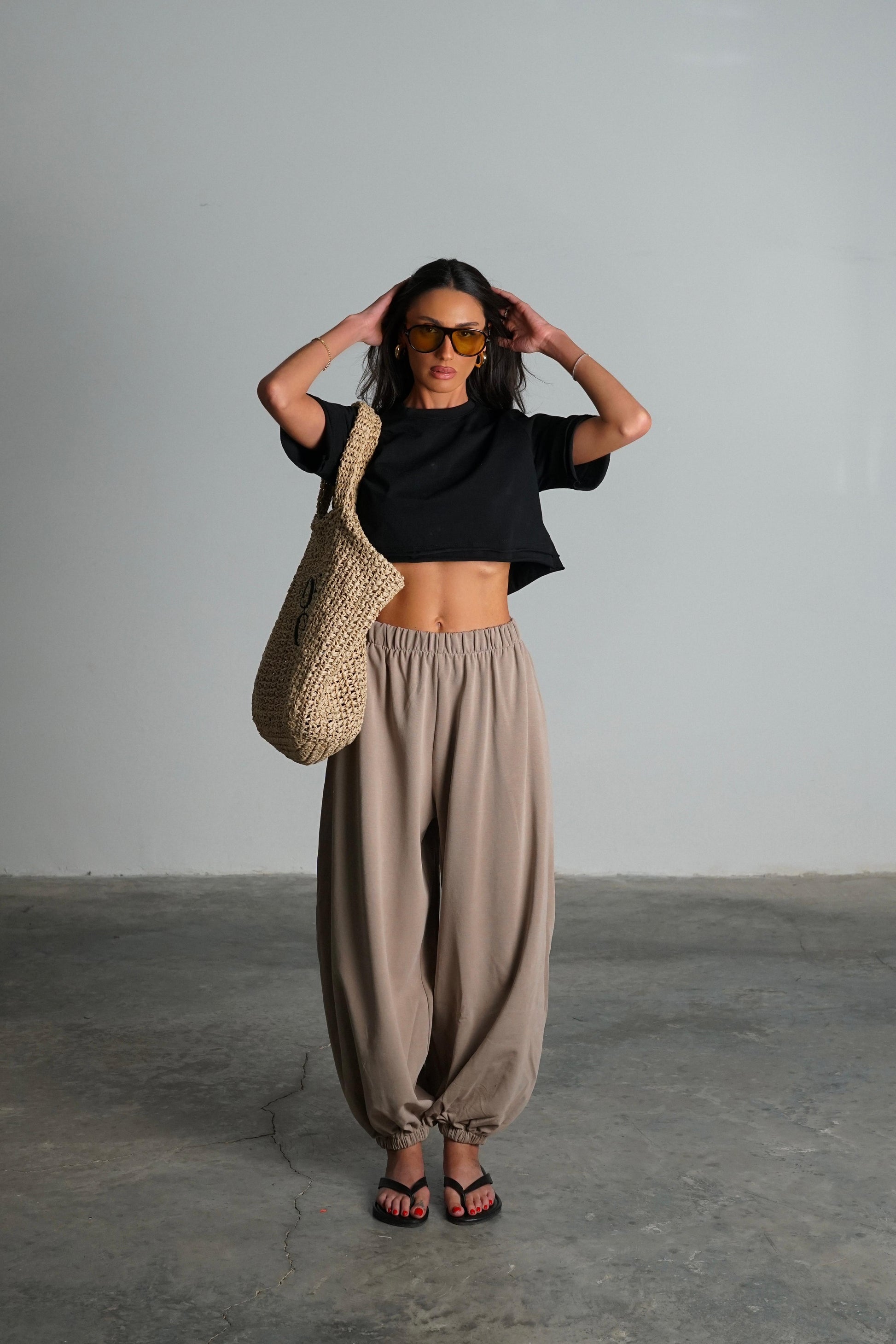 מכנס בגזרת בלון עם גומי במותן ובסיומת