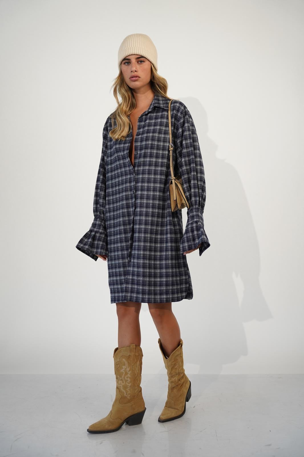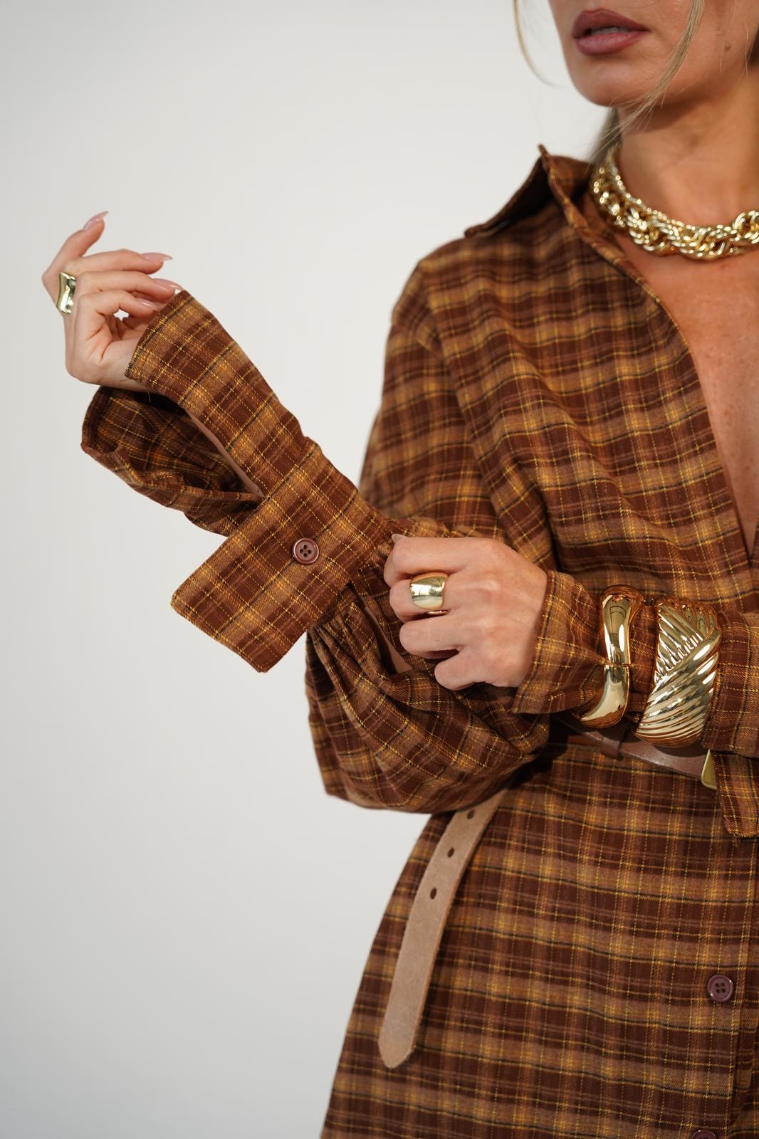שרוול ארוך רחב עם סיומת חגורת כפתור